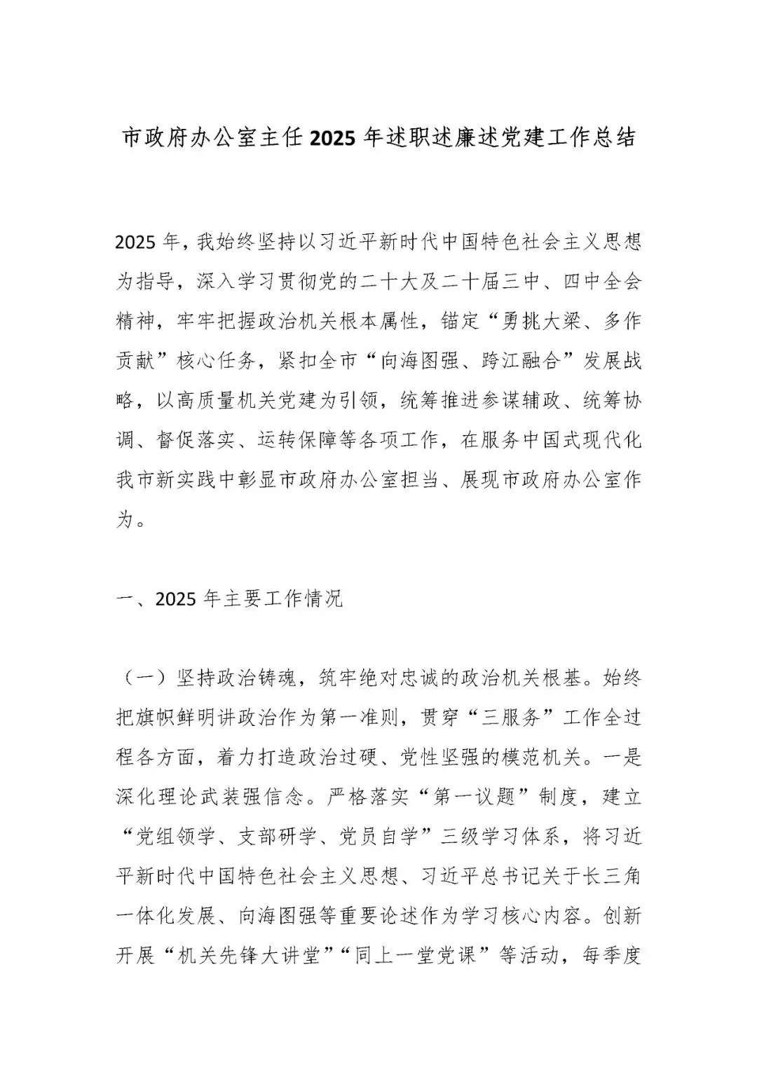 >市政府办公室主任2025年述职述廉述党建工作总结