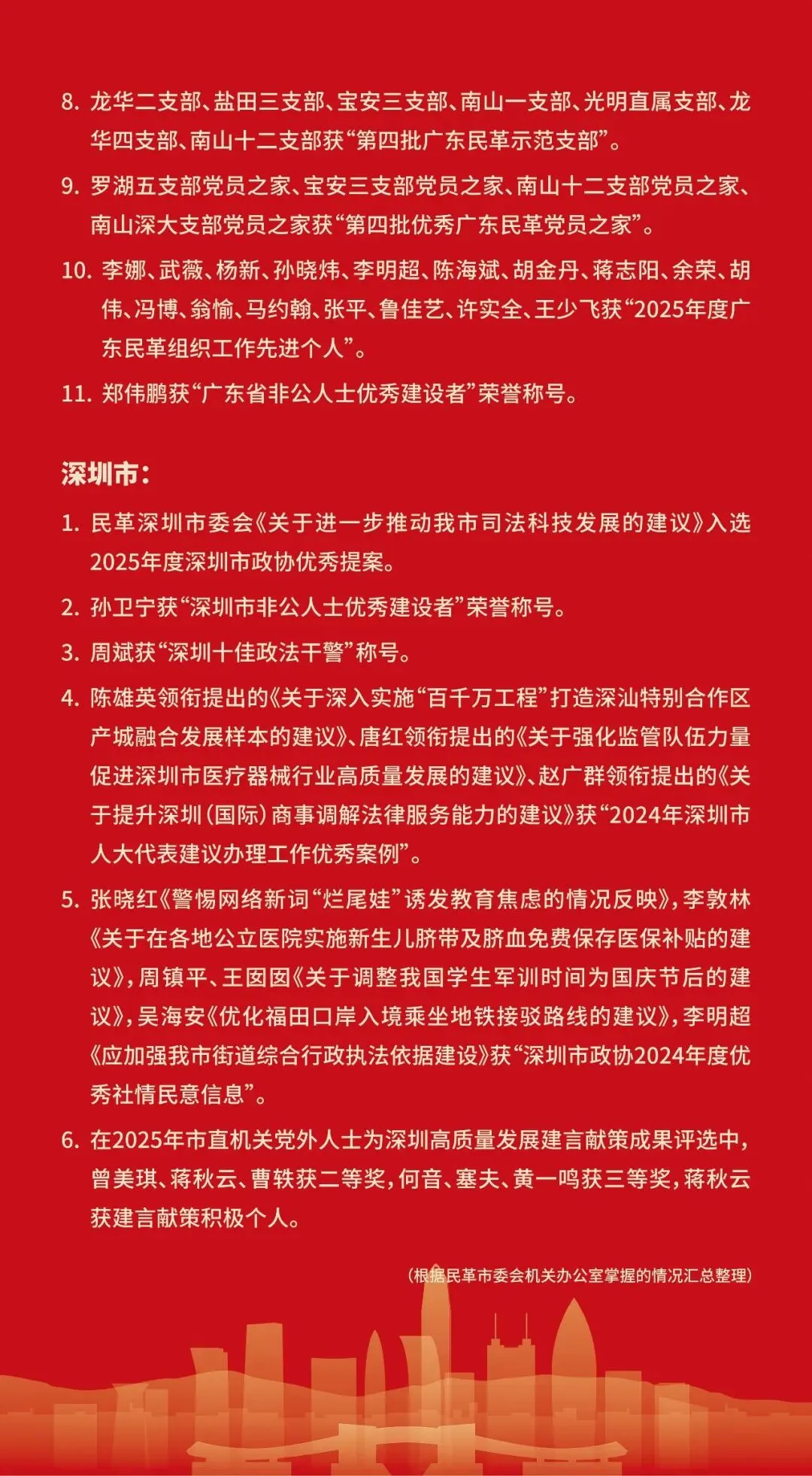 何杰表示,2026年是“十五五”规划开局之年,是民革全党的“作风建设年”,还是民革深圳市委会的换届之年,又恰逢红军长征胜利90周年。总书记说过,每一代人有每一代人的长征路。实现社会主义现代化是一个阶梯式递进、不断发展进步的历史过程,需要不懈努力、接续奋斗,我们已经走过了千山万水,还要继续跋山涉水。希望大家团结起来,争创新优势,实现新突破,为深圳加快打造更具全球影响力的经济中心城市和现代化国际大都市,奋力在推进中国式现代化的伟大实践中走在前列、勇当尖兵,作出民革新的更大贡献!
