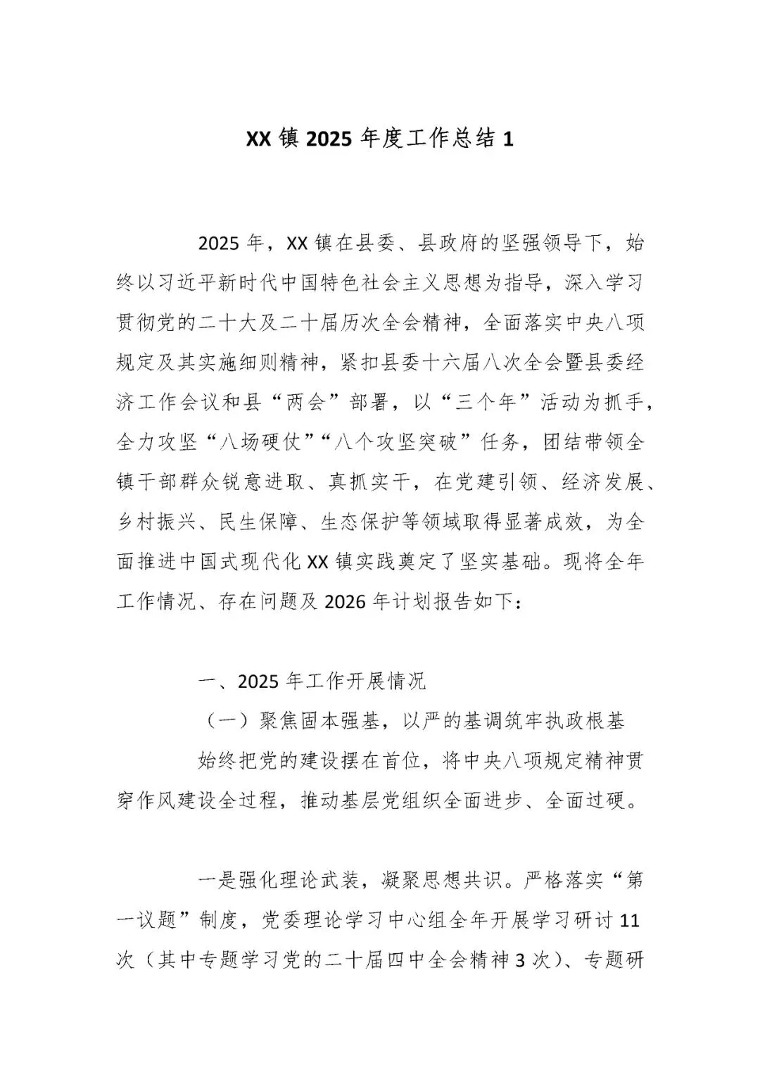>XX镇2025年度工作总结1