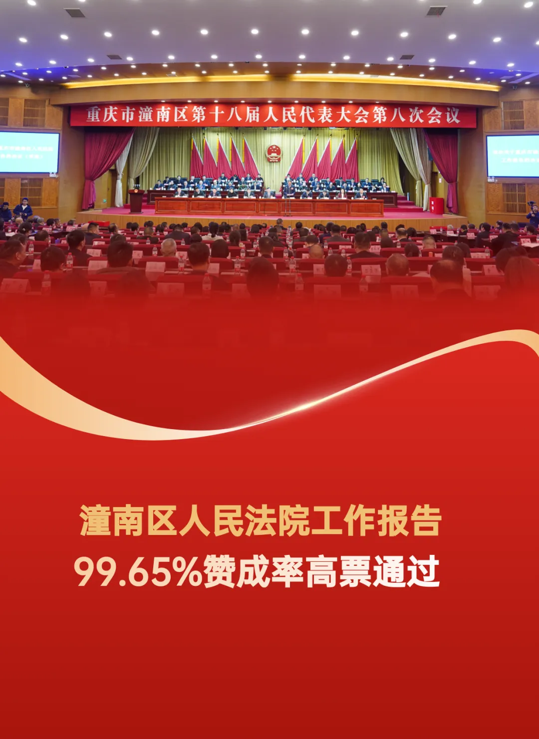 1月9日,在潼南区第十八届人民代表大会第八次会议上,潼南法院党组书记、院长龙建强作法院工作报告。1月10日,经人大代表审议表决,潼南法院工作报告以99.65%的赞成率获高票通过。