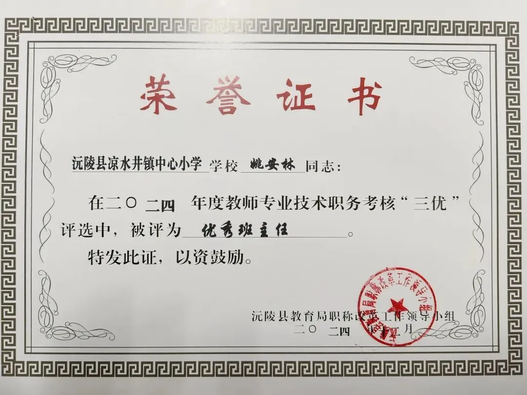 2024 年度专业技术职务考核中,我被评为三优,同时荣获优秀班主任称号。