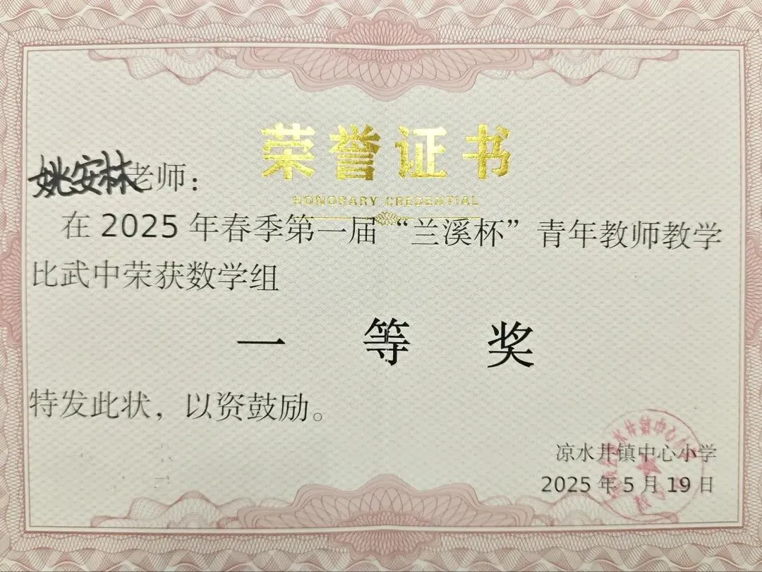 2025 年春季,第一届兰溪杯青年教师教学比武的舞台上,我凭借扎实的教学基本功和创新的教学方法,荣获教师组一等奖。