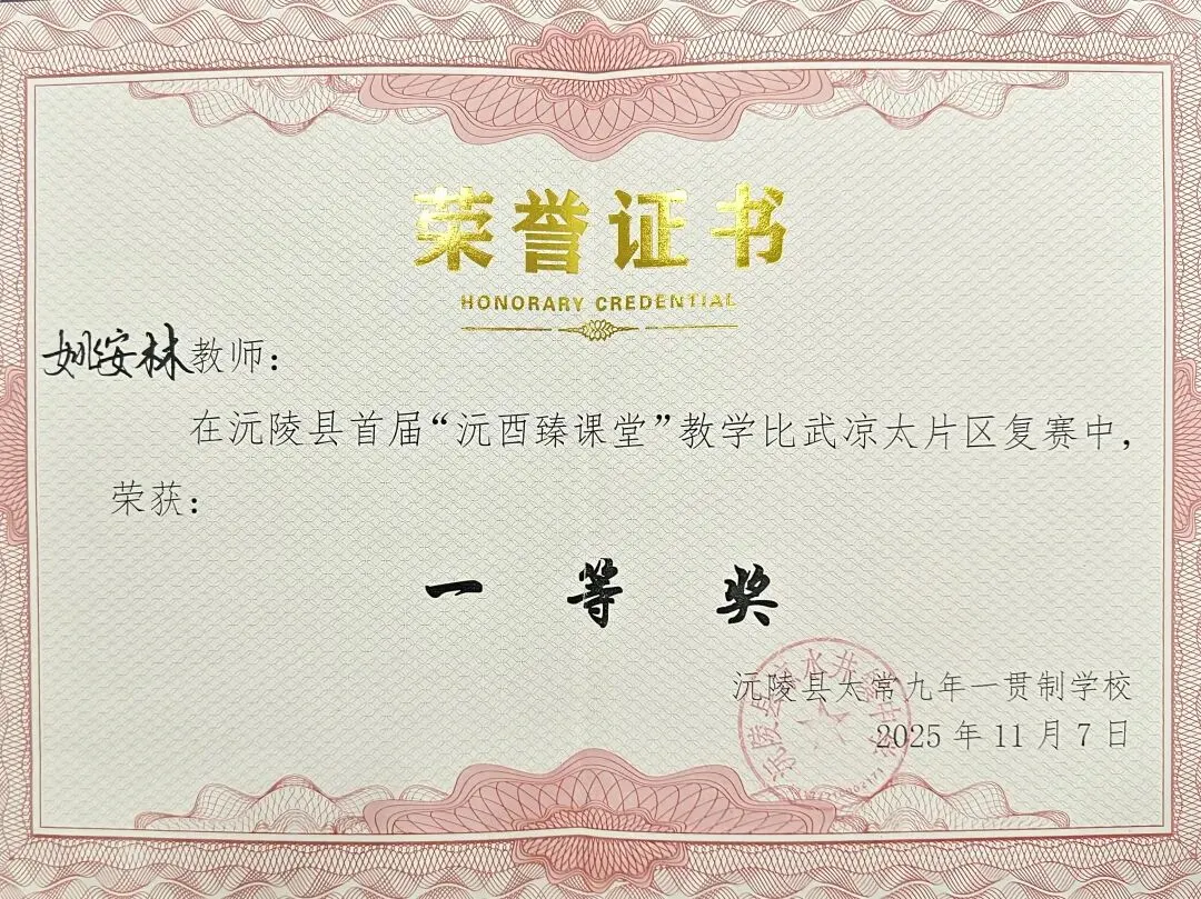 在县“沅酉臻课堂”教学比武中,我凭借精彩的课堂表现荣获区赛一等奖。