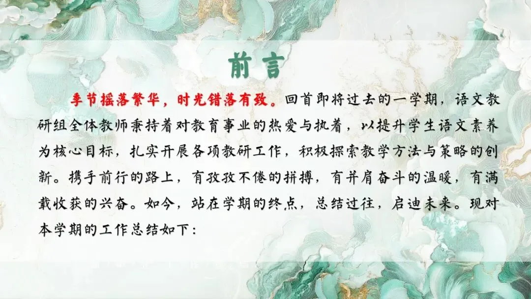 2025年学校语文教研组工作总结ppt:回眸耕耘路。