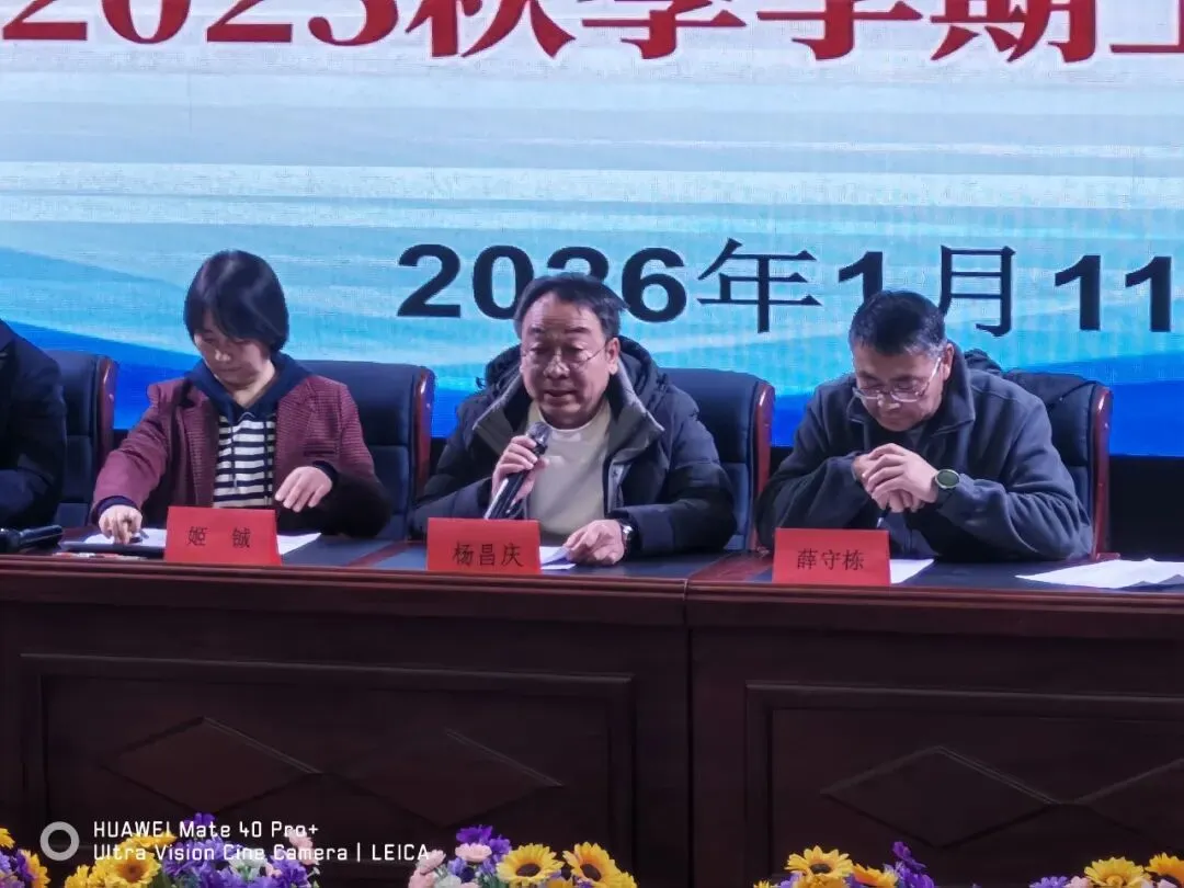 会上,校领导全面总结了2025秋季学期的办学成果。本学期以来,学校始终以立德树人根本任务为核心,深耕教育教学主业:在党建引领下,推动党建工作与教育教学深度融合,筑牢育人政治根基;在教学提质上,通过精细化管理、主题化教研与项目化创新,打造高效课堂,助力师生共同成长;在德育实践中,以经典诵读、文明礼仪教育、劳动实践活动为载体,培育学生全面素养;在安全保障上,常态化开展安全隐患排查与应急演练,织密校园安全防护网。