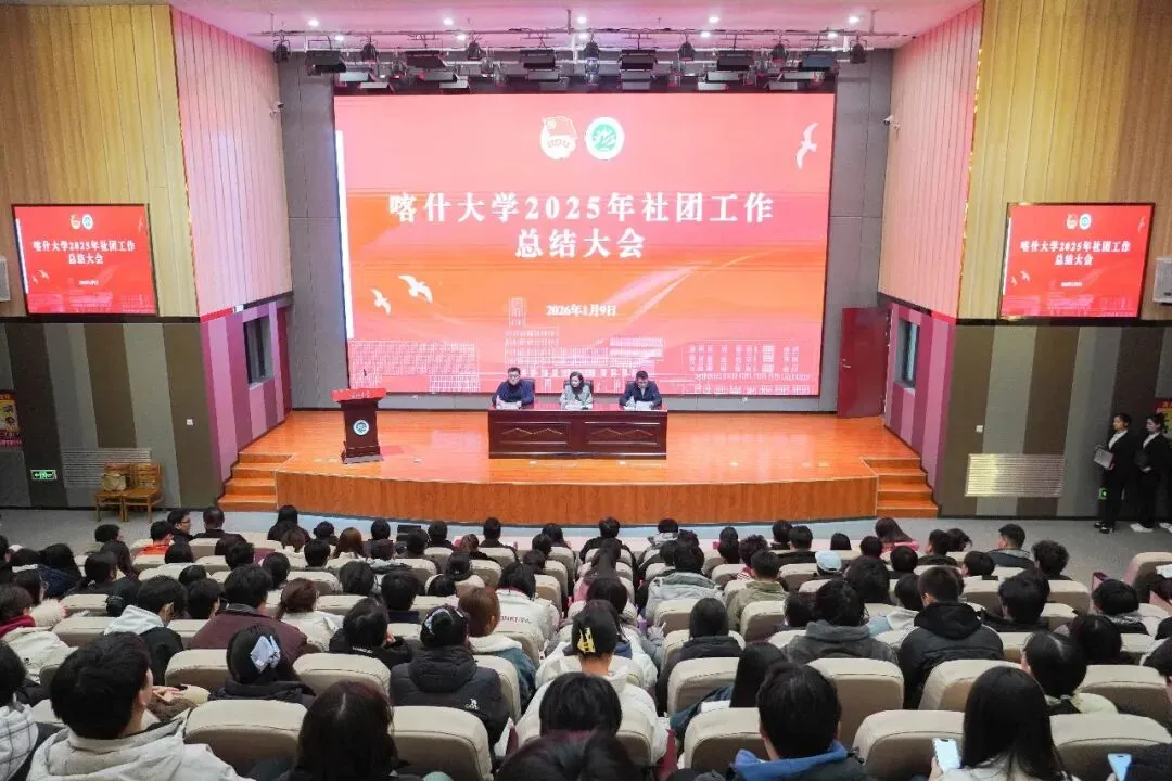 为全面总结2025年学生社团工作成效,推动社团规范化、高质量发展,2026年1月9日下午,喀什大学2025年学生社团工作总结大会在新泉校区图书馆三楼报告厅顺利召开。校团委书记阿依古丽·阿布都热西提出席会议,校团委全体干部,各学院团委负责人,各社团指导教师、学生负责人,校学生会社团部共同参与,会议由校团委副书记艾买提江·伟力主持。