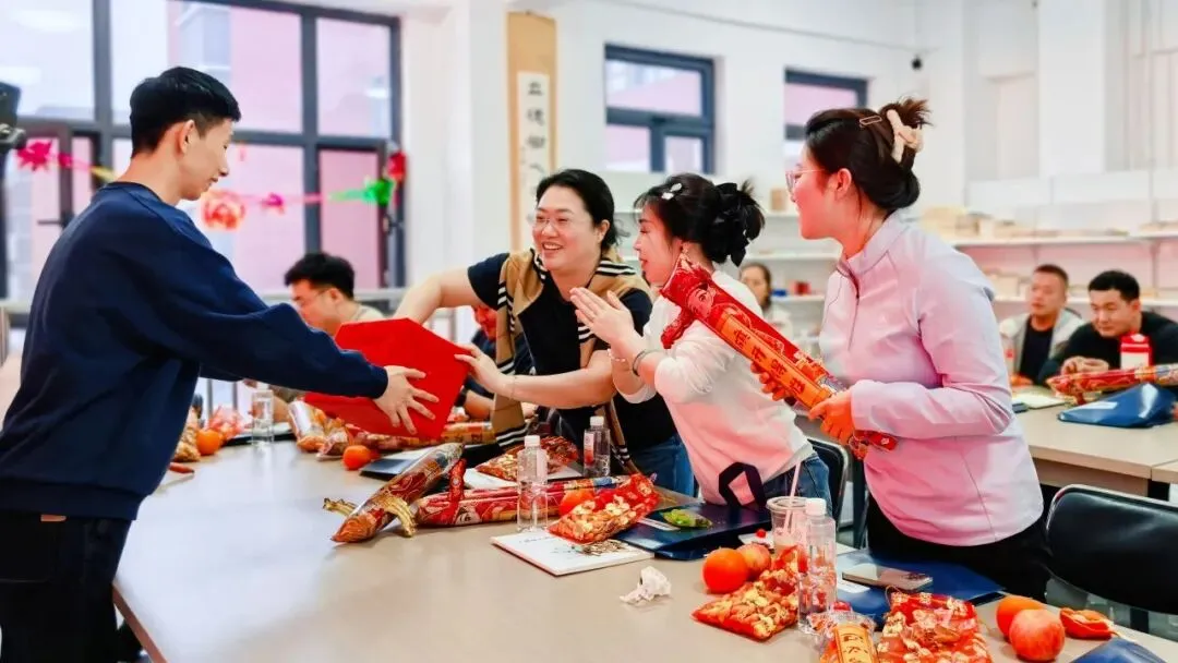 伴随着欢快的节奏,全体教师踊跃参与,在满怀期待的互动中,收获着属于自己的新春祝福。