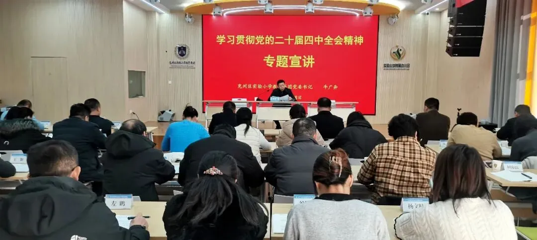 1月8日,兖州区教体系统宣讲团成员,兖州区教体局副科级干部,兖州区实验小学教育集团党委书记牛广奔在实验小学教育集团进行党的二十届四中全会精神专题宣讲,推动党的二十届四中全会精神在集团内部的落地生根,为集团教育高质量发展指明了发展方向。