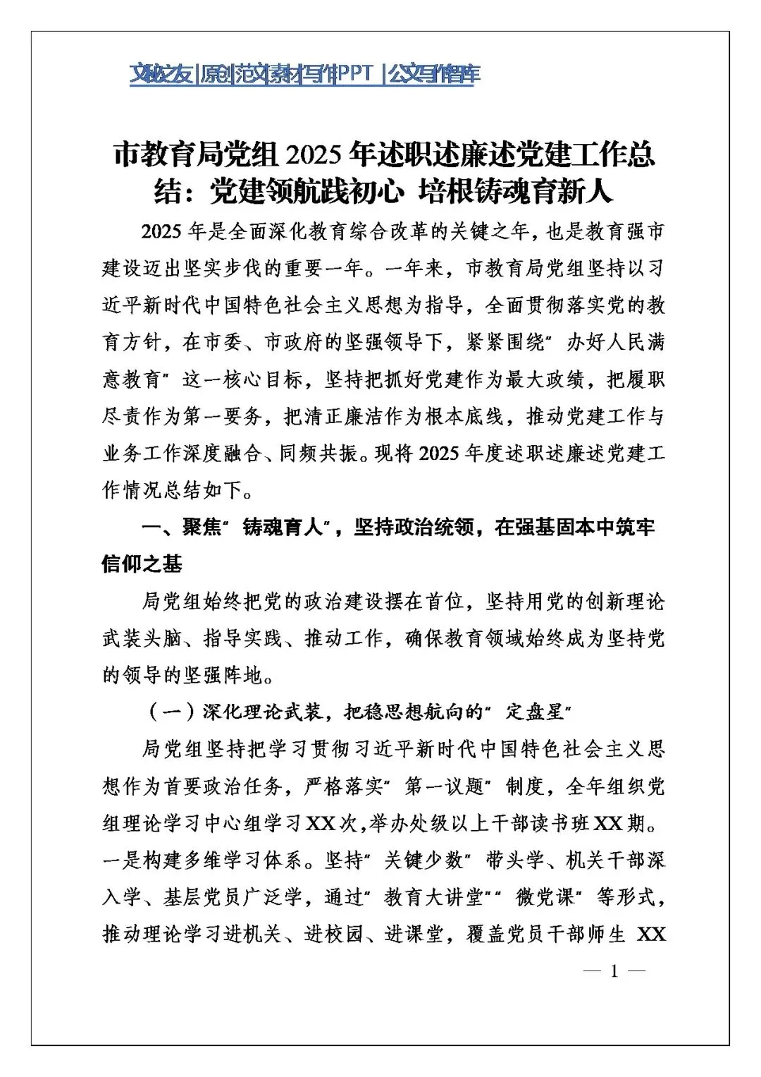 我今天推荐的《市教育局党组2025年述职述廉述党建工作总结:党建领航践初心 培根铸魂育新人》,材料在写作角度、结构和写作方法上非常见机关老手的稳劲。