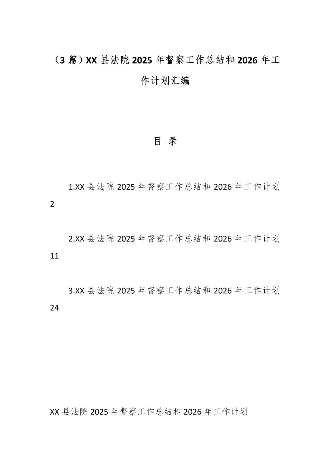 >(3篇)XX县法院2025年督察工作总结和2026年工作计划汇编