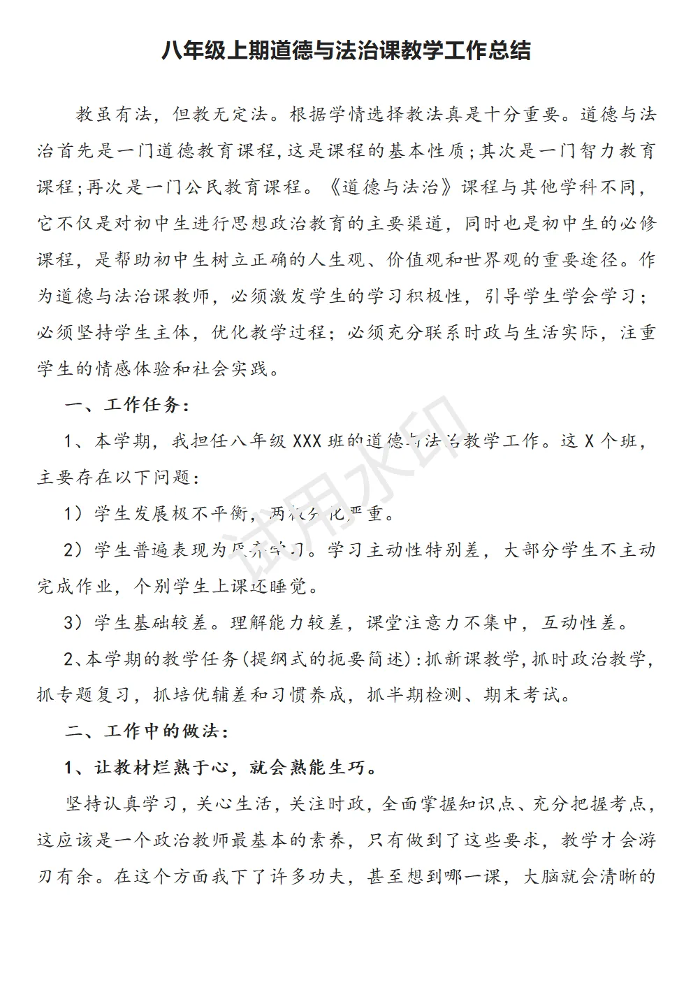 八上道德与法治教学工作总结