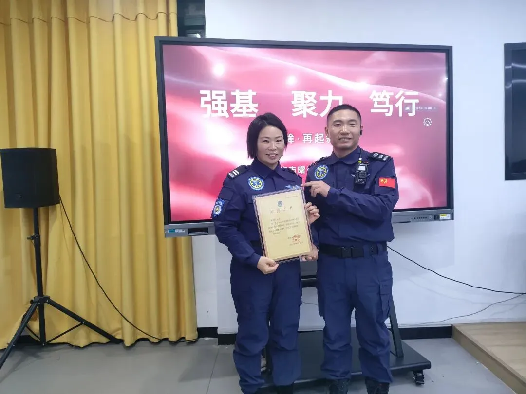 在激动人心的表彰环节,队长徐敏旭和副队长花蕾共同为获得2025年度表彰的队员颁发荣誉证书。这些受到表彰的队员在救援行动中表现突出,展现了卓越的专业素养和无私的奉献精神。他们的先进事迹激励着在场的每一位队员,让大家更加坚定了投身救援事业的决心。