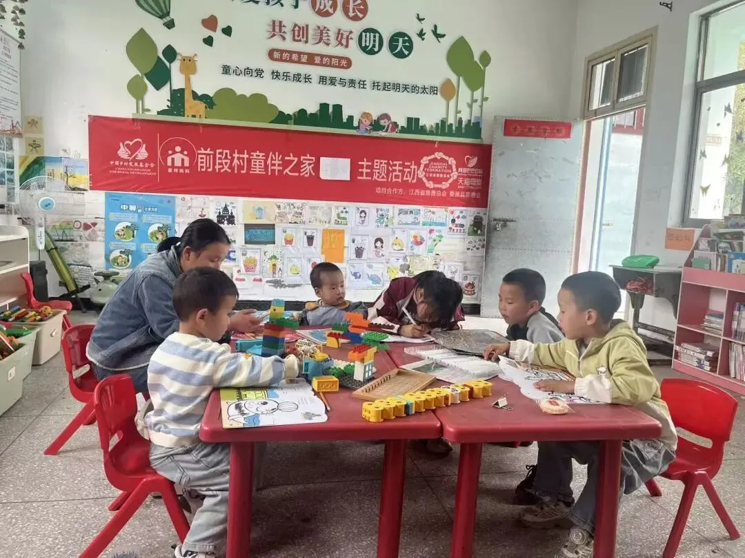童伴之家作为村内儿童的“第二个家”,本年度坚持每周常态化开放,节假日、寒暑假延长开放时间,为儿童提供固定的活动与学习空间。童伴之家内配齐儿童绘本、益智玩具、学习工具书及体育运动器材,满足不同年龄段儿童的多样化需求。在日常运营中,前段村童伴妈妈带领儿童开展绘本共读、手工制作、趣味游戏等活动,培养儿童的阅读兴趣与动手能力。同时,针对村内留守儿童的学业短板,帮助儿童攻克学习难题。