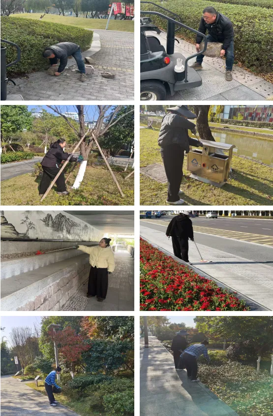 物业行政人员每日对各公园开展常态化巡查整治工作。工作中,先对中心湖西塔柱步道旁的多余石块进行清理搬运,再对状元公园绿化带内的树铭牌逐一核查、规范整理,以此进一步完善园区标识导视体系;随后聚焦公园多区域开展垃圾专项清理行动,对烟头、塑料袋、广告纸等各类废弃物进行彻底清除,有效提升了园区整体环境卫生品质。