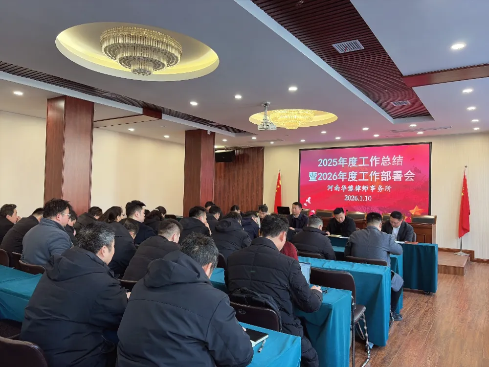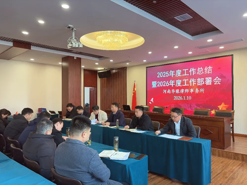 律途逐光,笃行致远。为全面复盘2025年工作成效,精准部署2026年发展蓝图,凝聚全所力量迈向高质量发展新征程,1月10日上午,河南华豫律师事务所2025年度工作总结暨2026年度工作部署会顺利召开。党总支、管委会、监事会成员齐聚一堂,共话过往成就,共商未来大计。会议伊始,各项工作总结有序开展,全面回顾2025年律所发展的坚实足迹,为新一年工作筑牢根基。