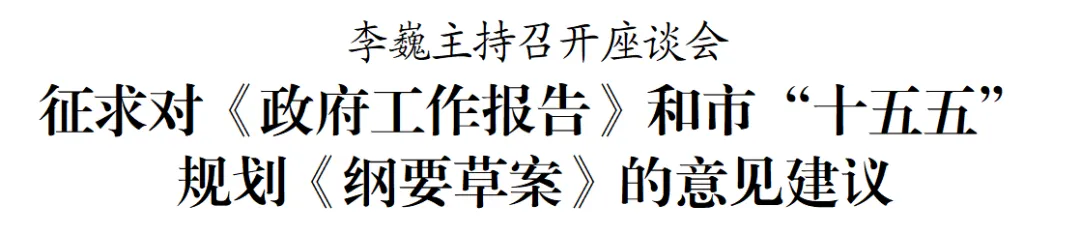 1月12日,市委副书记、市长李巍主持召开座谈会,就《政府工作报告(征求意见稿)》和市“十五五”规划《纲要草案》征求意见建议。