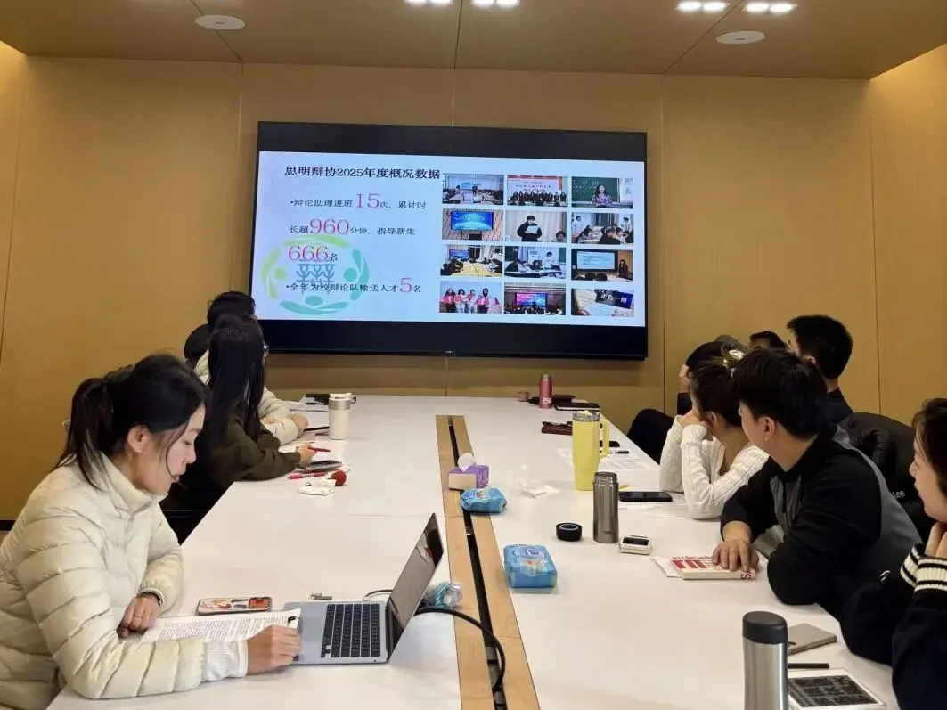 会上,各学生团队指导老师依次进行述职汇报。学生自主管理委员会、分团委学生会、心理协会、思明辩论协会、班助理团队、学生党员服务中心、党员工作站等七支队伍的指导老师及学院学生资助中心,围绕本学期基本工作、特色活动、存在问题及未来规划等方面展开总结与反思。随后,三位新入职的正副辅导员结合各自带班实际,汇报了本学期在熟悉工作、开展重点工作、探索特色管理方法等方面的具体实践,并分析了自身不足,提出下一步学习与改进计划。