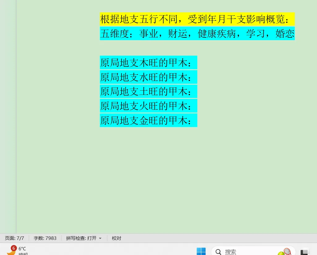 大家好 感谢大家的热情私信询问工作进度,最近3天去查了个血糖,非常高,所以耽误了一下写作。写作这个东西,就是中途不能被打断。明天一定能发甲木。甲木之后是辛金,辛金之后是己土,己土之后是丙火和壬水。丁火 乙木 癸水在后面一点,可能要到过年~但我状态好,猛一点写,也许不用这么久