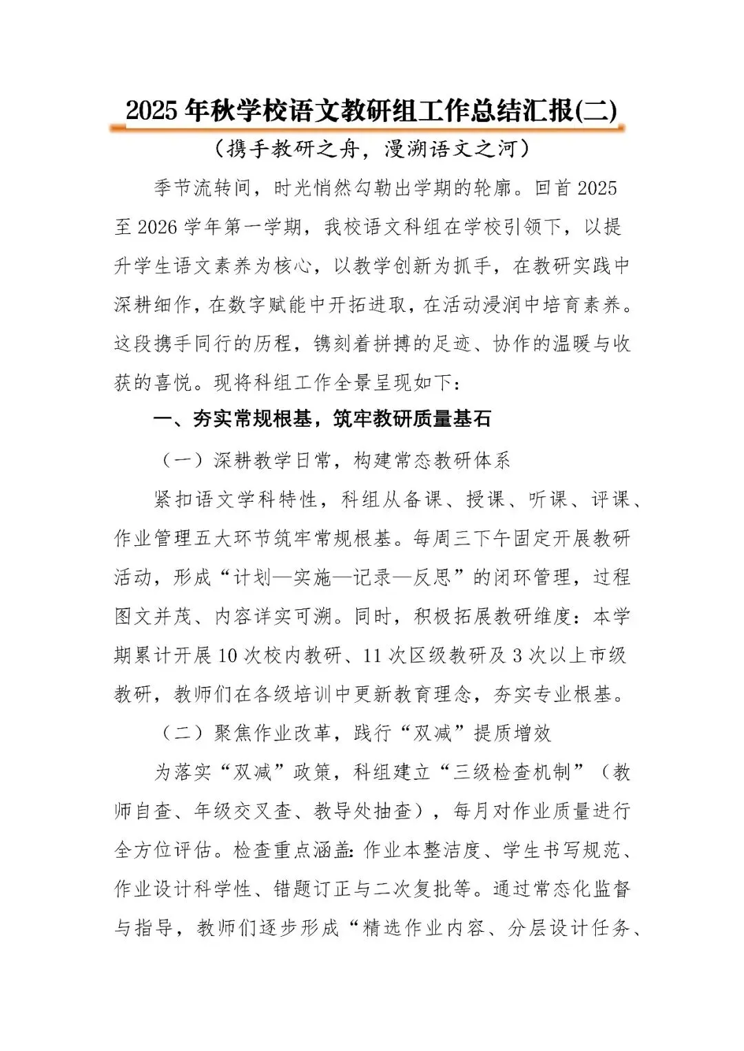 2025年秋季学期语文教研组工作总结,从四个方面系统回顾了教研组的成果与探索。