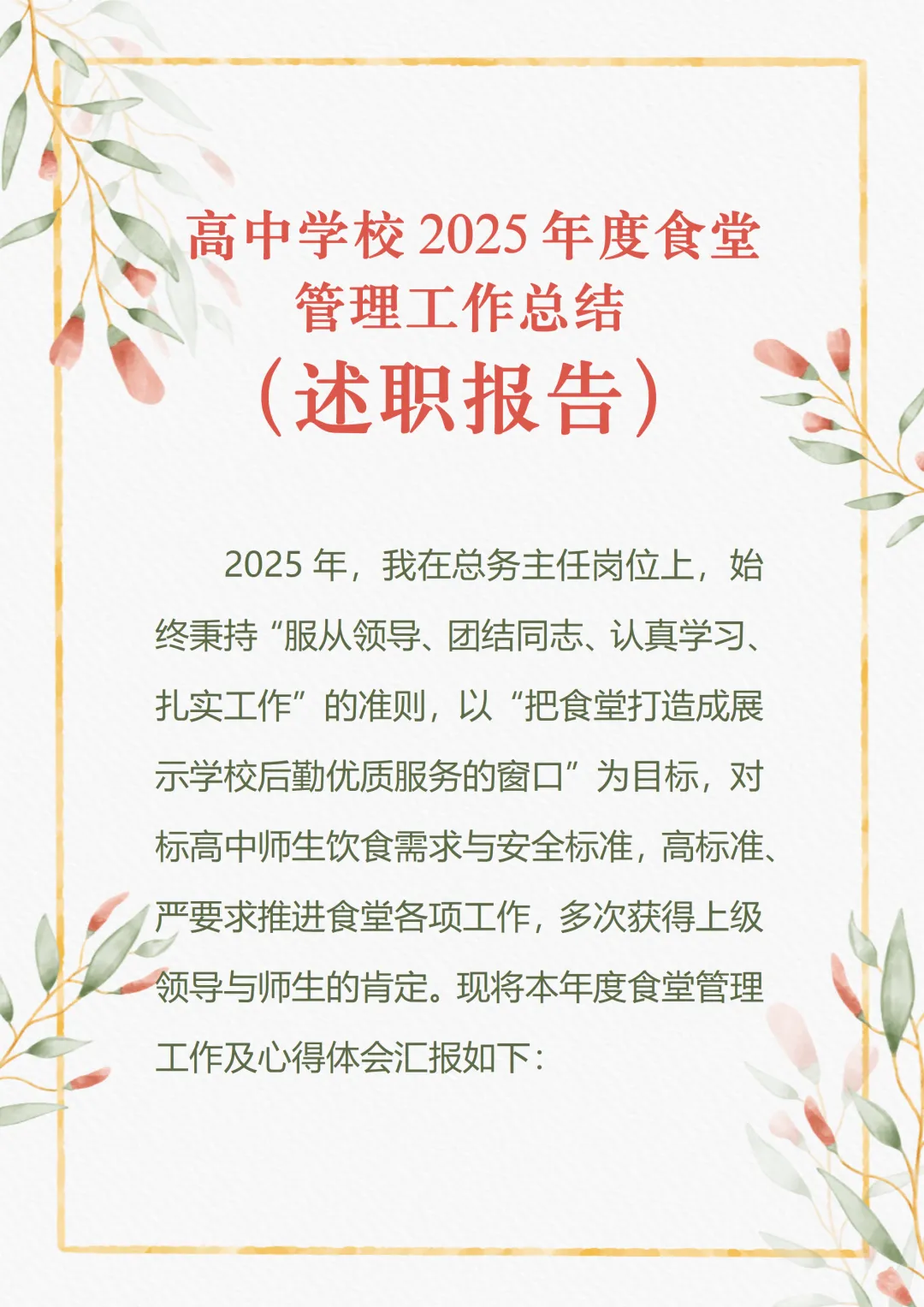 >高中学校2025年度食堂管理工作总结(述职报告)