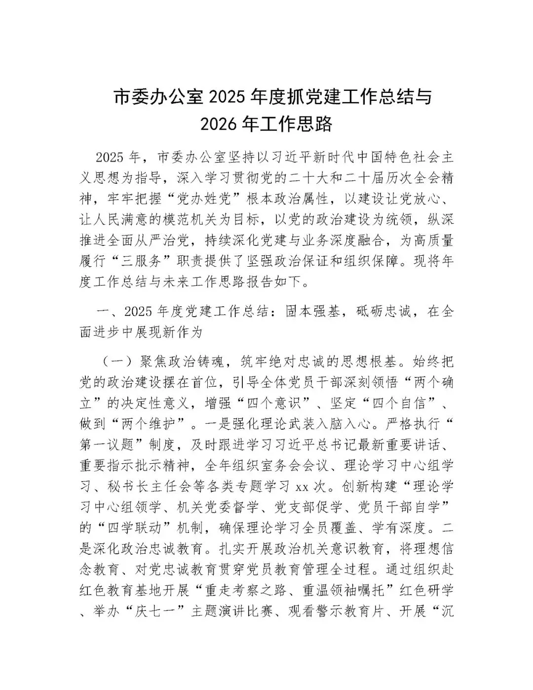 >市委办公室2025年度抓党建工作总结与2026年工作思路