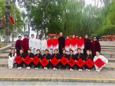 今年重阳节,站上在玉渊潭公园举办了“快乐健身汇,重阳展风采”的主题活动,大家身着各色展演服,笑意满满,精神抖擞的依次展演了八法五步、二十四拳、28式传统陈式太极拳、传统陈式刀、32剑、太极伞和健身气功等,整个展演过程充满了快乐和正能量,吸引不少游客驻足观看,起到了宣传快乐健身的作用。拳友胡长顺先生精心创作的《普众站之歌》,更是将太极文化理念、站点精神融入歌词,成为站点文化标识;不少拳友都自制小视频,记录下美好的瞬间,而李琴老师精心为《普众站之歌》选配的照片,最终成就了深受全站认可的普众站宣传小片, 通过视频号发布传唱视频,有效宣传了太极文化、提升了站点知名度与影响力。