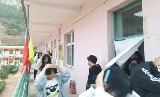 图7-8:学校进行防震安全疏散演练活动