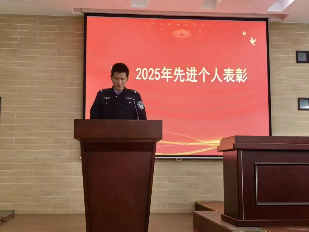 大会对年度先进个人给予隆重表彰。先进个人代表蔡仁鹏上台发言,他结合自身岗位实践与履职经历,分享工作心得感悟,他表示:“荣誉属于集体,未来将以更饱满的热情,更扎实的行动,与全体同仁携手并肩,共同守护好校园的安宁和谐。”