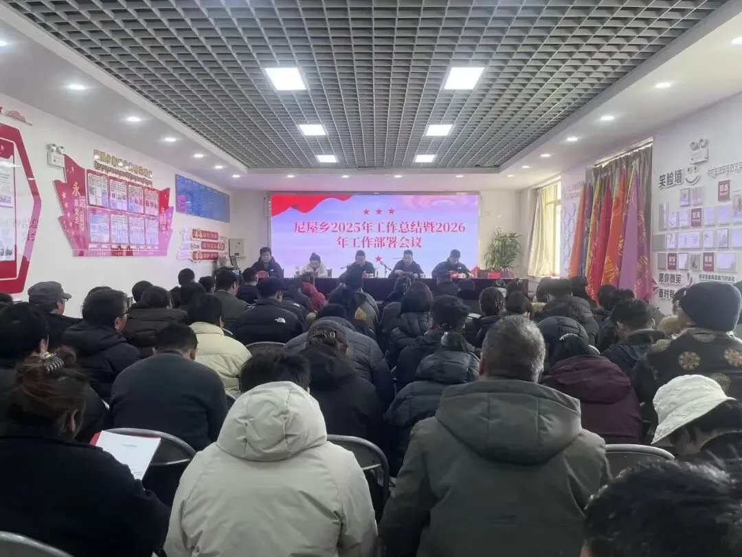 1月13日,尼屋乡召开2025年度工作总结暨2026年工作部署会议,全面总结过去一年的工作成绩与经验,系统谋划新一年的发展蓝图。会议由乡党委副书记、乡长李辉主持,政协嘉黎县副主席、乡党委书记索朗旺青作总体部署讲话,乡党政班子成员、各村代表及“5+3”部门负责人参加会议。