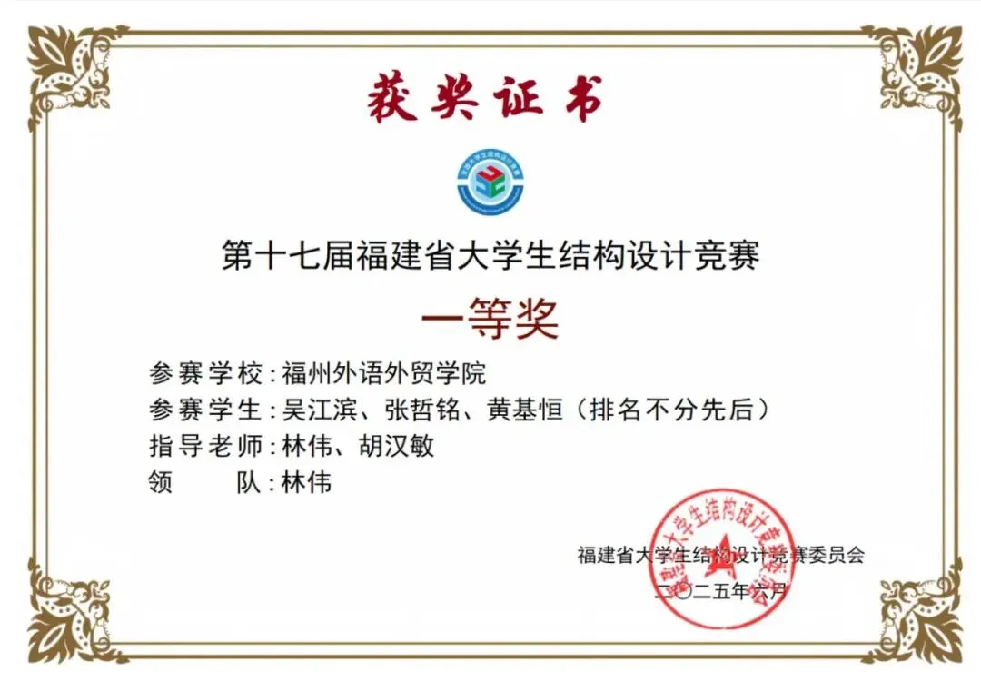 依托专业特色搭建科创平台,以赛促学激发创新活力,学院学子在各类学科与创新创业竞赛中成果斐然。其中,《铮铮钢骨--建筑安全监护的引航者》《乡建乡创--高教赋能乡村振兴的践行者》在2025年全国高校商业精英挑战赛创新创业竞赛创业模拟赛道斩获全国一等奖,“星瞳科技--基于多模态的智慧交通安全引领者”获十三届全国大学生数字媒体科技作品及创意竞赛全国二等奖,该赛事中我院吴晓凯老师获全国优秀指导教师奖;此外,在中国国际大学生创新大赛A类省赛、iCAN大学生创新创业大赛、第十二届“学创杯”、第十一届国际高校BIM毕业设计创新大赛等赛事中,共斩获全国一等奖3项、二等奖6项、三等奖8项,省赛一等奖6项、二等奖7项、三等奖20余项。