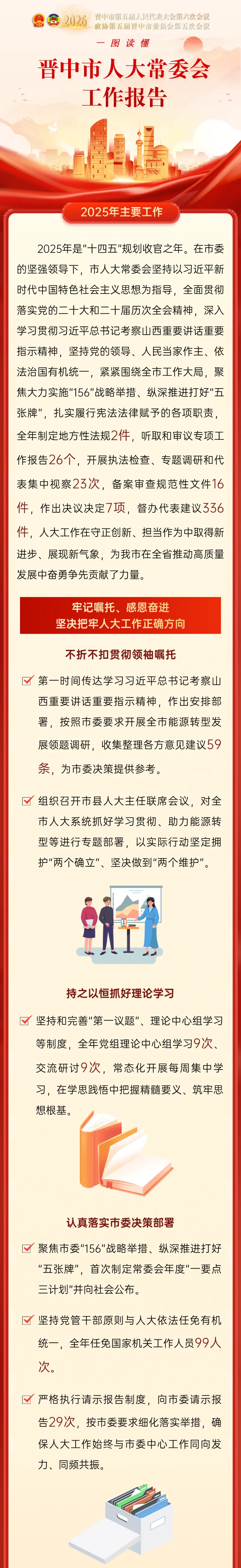 1月14日上午,晋中市第五届人民代表大会第六次会议第二次全体会议开幕。晋中市人大常委会主任王建忠代表市人大常委会向大会报告工作。报告全面总结了2025年工作,亮出了2026年履职任务书。