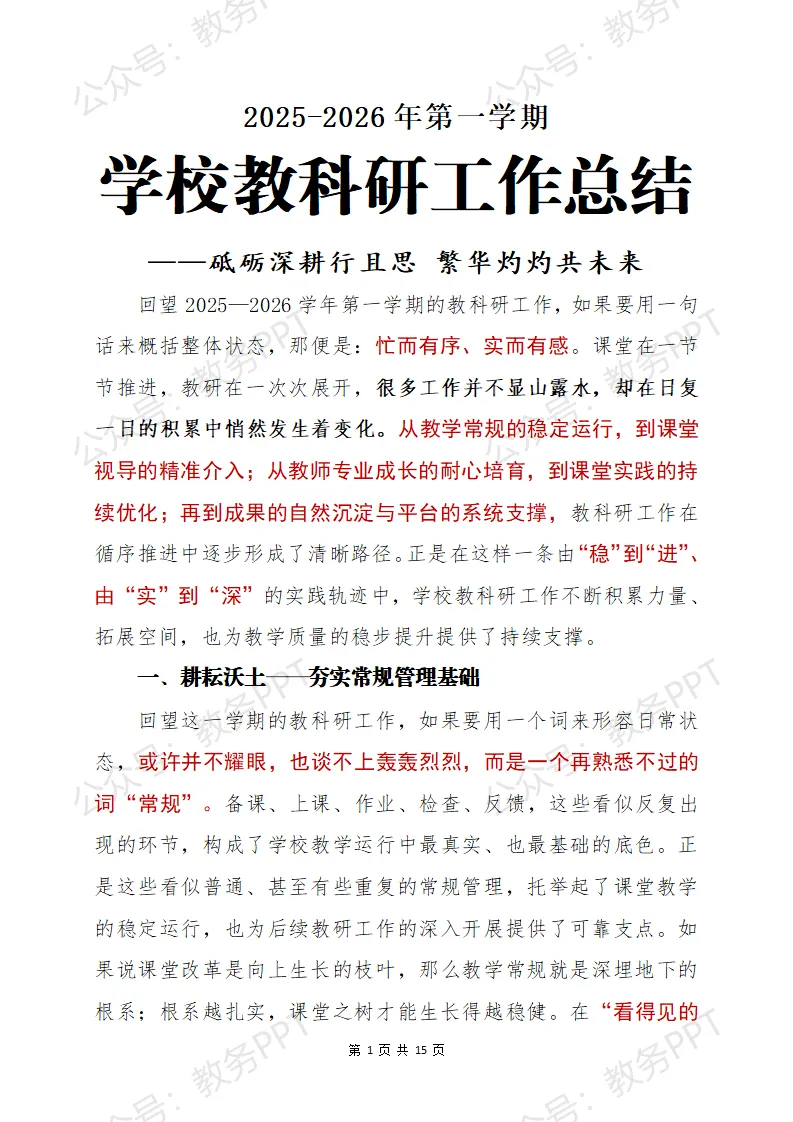 #工作总结 #教研工作 #教科研工作总结 #第一学期 #工作总结 #2025年度工作总结 #教研工作总结 #学校教科研工作 #学校教科研