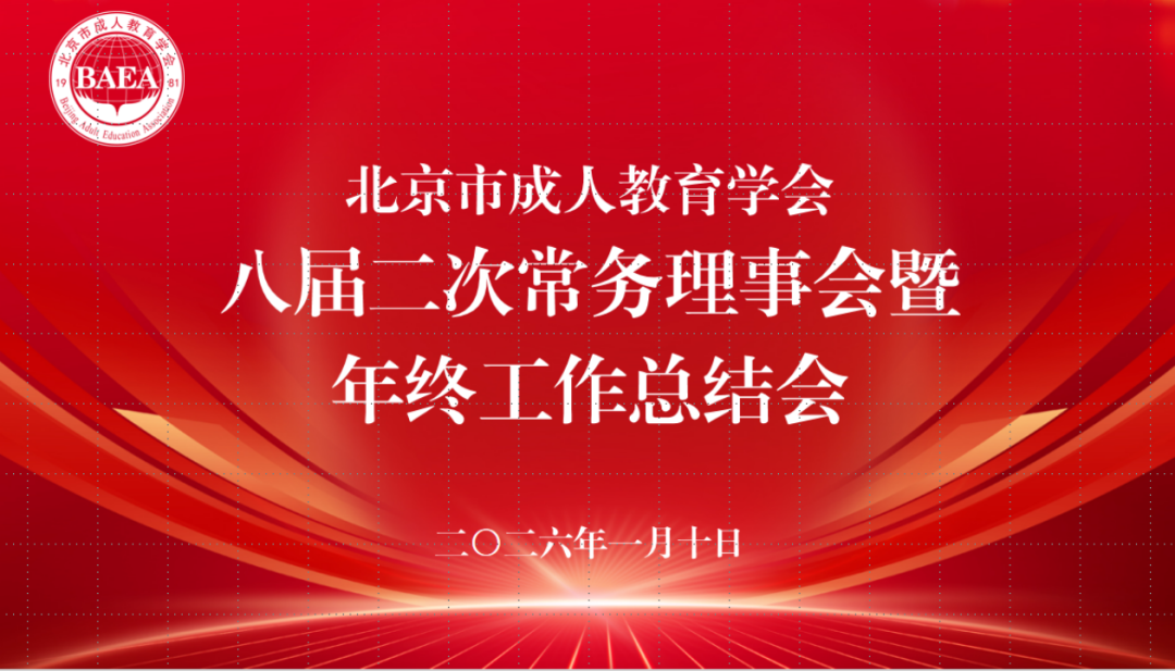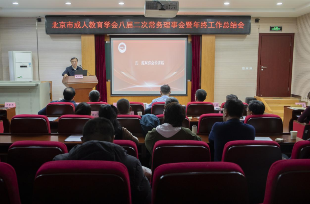 2026年1月10日下午,北京市成人教育学会八届二次常务理事会暨 2025 年年终工作总结会在西城经济科技大学召开,会长范双喜、副会长刘臣、张锦、刘占军、高世吉、贠天祥、张建国、崔耀祖、李彩玲,监事长王月海,各工委会理事长和各工作部主任共40人参加了会议。分管各工作委员会和各部的8位副会长根据各自分管领域分别汇报了2025年开展的工作情况和2026年工作设想。各位领导对这次汇报高度重视,汇报内容紧扣实际、内容翔实、重点突出,汇报紧扣工作实际、内容翔实、重点突出,为学会整体总结与未来规划奠定坚实基础。 会议审议通过了北京市成人教育学会《2025年工作总结》和《2026年工作要点》;副会长兼秘书长李春英介绍了《北京市成人教育学会“十五五”发展规划》编制情况;审议了北京市成人教育学会用印管理规范(修订)、北京市成人教育学会部门公章管理办法、北京市成人教育学会社区能力提升项目管理规定等学会三项管理制度。全体参会常务理事一致同意通过以上工作要点和制度。会长范双喜最后讲话。范双喜同志代表学会第八届理事会,向出席本次会议的各位常务理事、监事、各工委会(部)负责人、副秘书长及学会秘书处工作人员表示热烈的欢迎和衷心的感谢!向过去一年来辛勤付出、团结协作的全体会员单位和学会同仁致以诚挚的敬意!学会2025年的工作紧张有序,自从2025年7月份换届以来,精心组织策划学习活动周,成功展示百姓学习之星事迹,广泛推广优秀终身教育品牌和科研成果,致力社区管理者能力提升举办各项培训活动和项目验收会,召开“十五五”规划高端学术研讨会等一系列活动,有序推进各项工作,高质量完成了2025年所有工作任务。2026年学会要坚持政治强会,促进组织发展;坚持学术立会,夯实发展核心支撑;坚持服务兴会,推进学习型城市建设;坚持依法治会,推动规范有序发展。本次会议分为两个阶段进行,第一阶段为2025年12月17日至31日召开了各工委会(工作部)分组总结汇报会。第二阶段为2026年1月10日召开的八届二次常务理事会暨年终工作总结集中大会。与以往总结会相比,本次会议呈现三大变化:一是精简会议时间,提升会议效率;二是优化会议模式,突出分组分段推进的系统性;三是充分发挥学会负责人的统筹引领作用,借助分组研讨加深了组员之间的沟通协作,凝聚了工作合力。2026年,学会要以党的二十大和二十届四中全会精神为指引,充分发挥学会桥梁、纽带、协调、服务的功能,不断提升学习型城市建设水平,为首都的成人继续教育高质量发展作出更大贡献。
