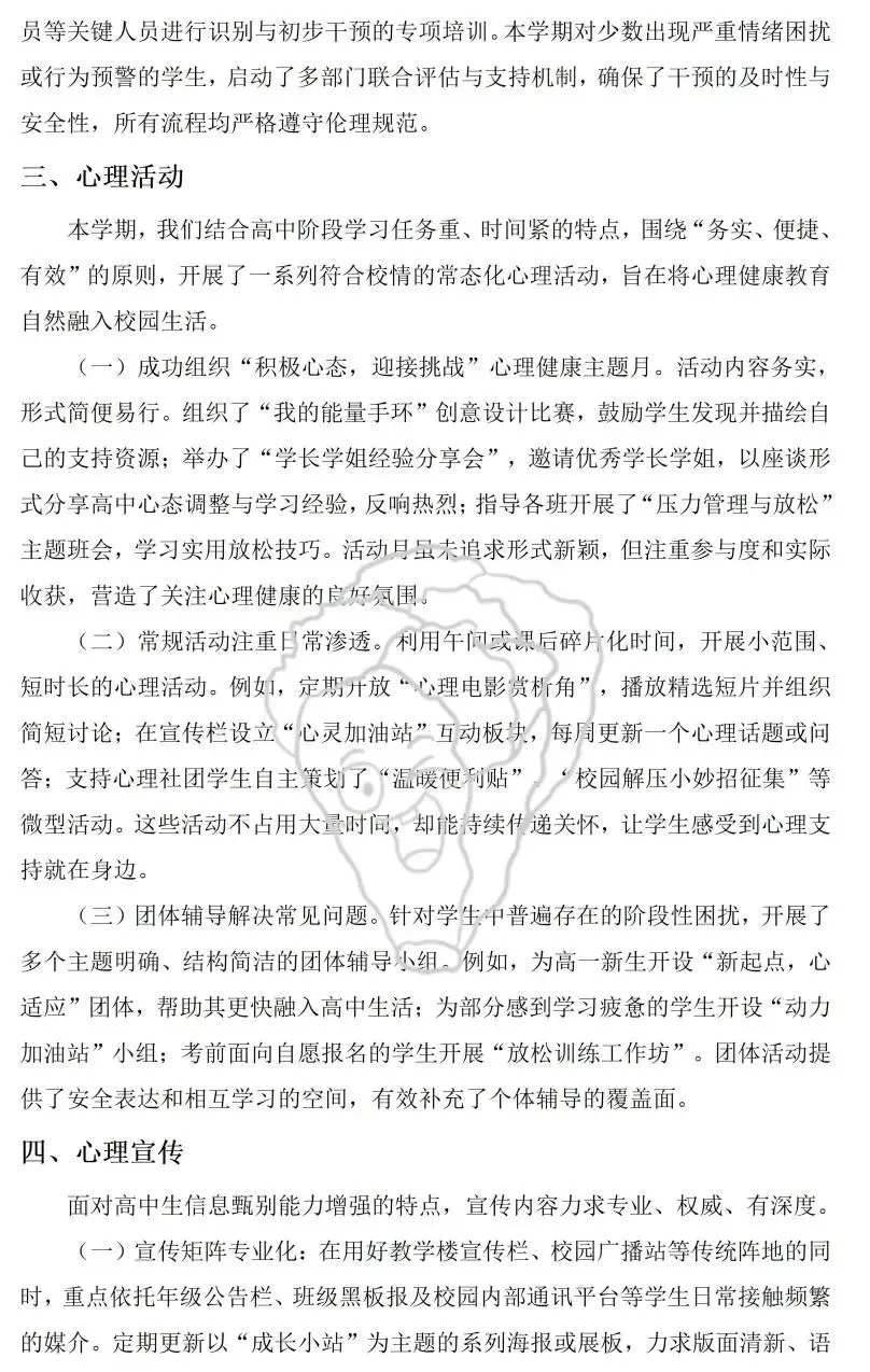 (2)高中心理工作总结5页
