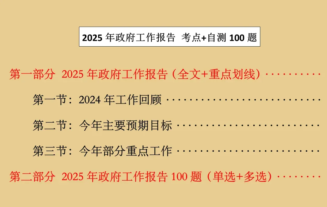 根据新发布的《2025年政府工作报告全文》,公考时政老师对文件核心考点进行了重点标注和归纳。