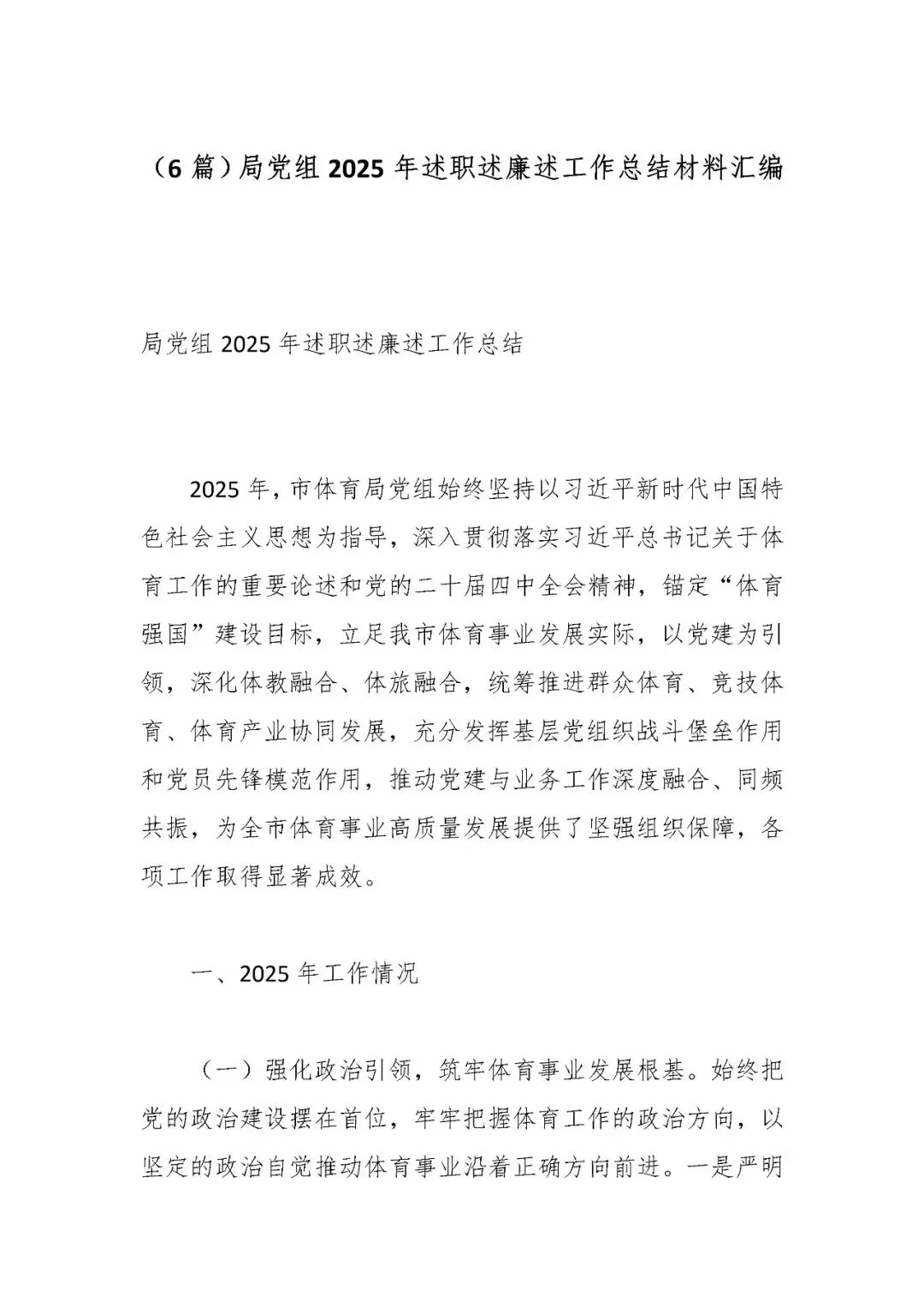 >(6篇)局党组2025年述职述廉述工作总结材料汇编