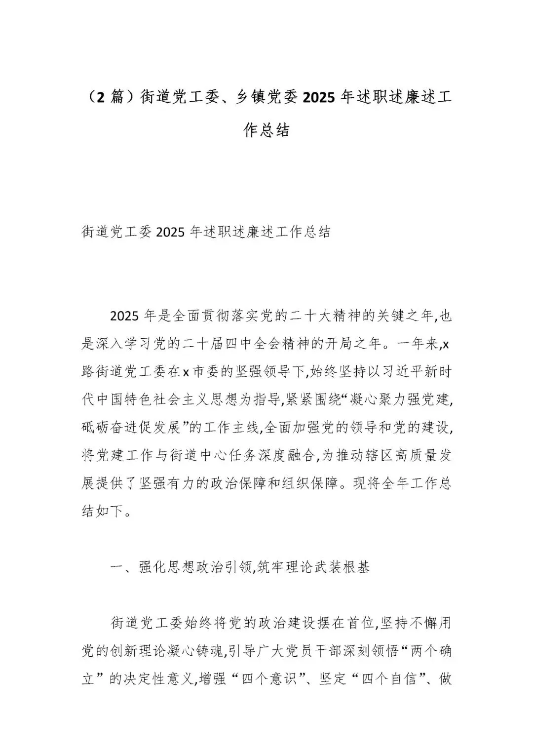 >街道党工委、乡镇党委2025年述职述廉述工作总结