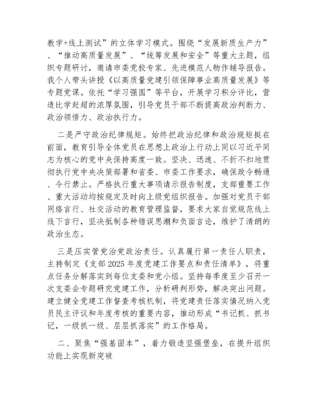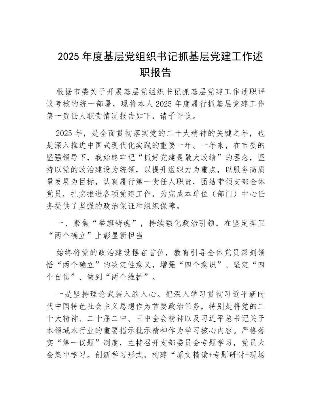 >2025年度基层党组织书记抓基层党建工作述职报告