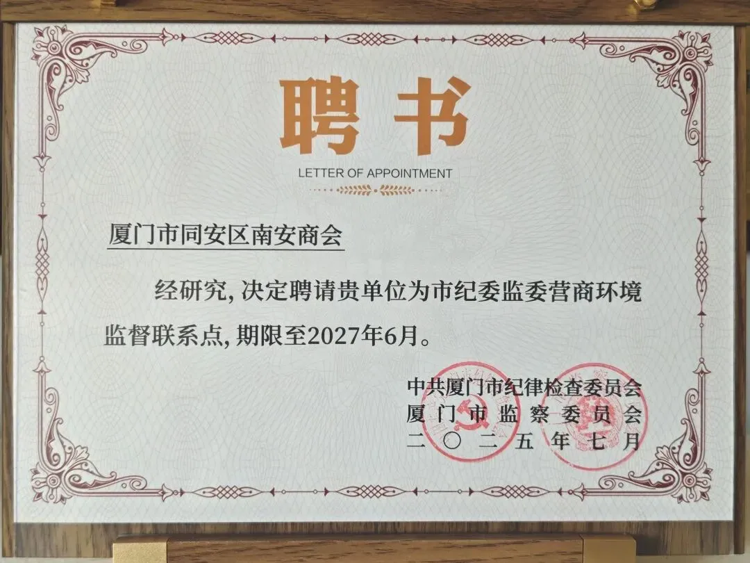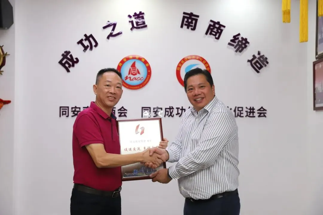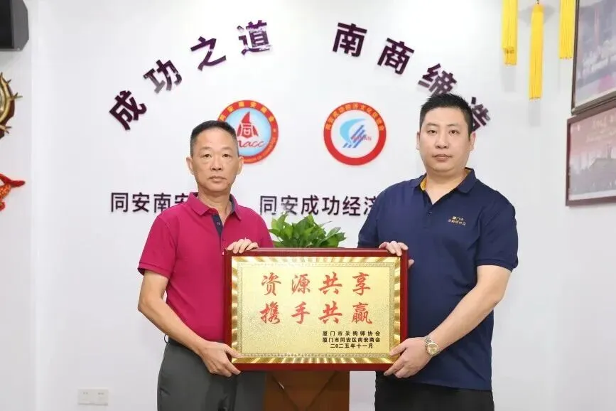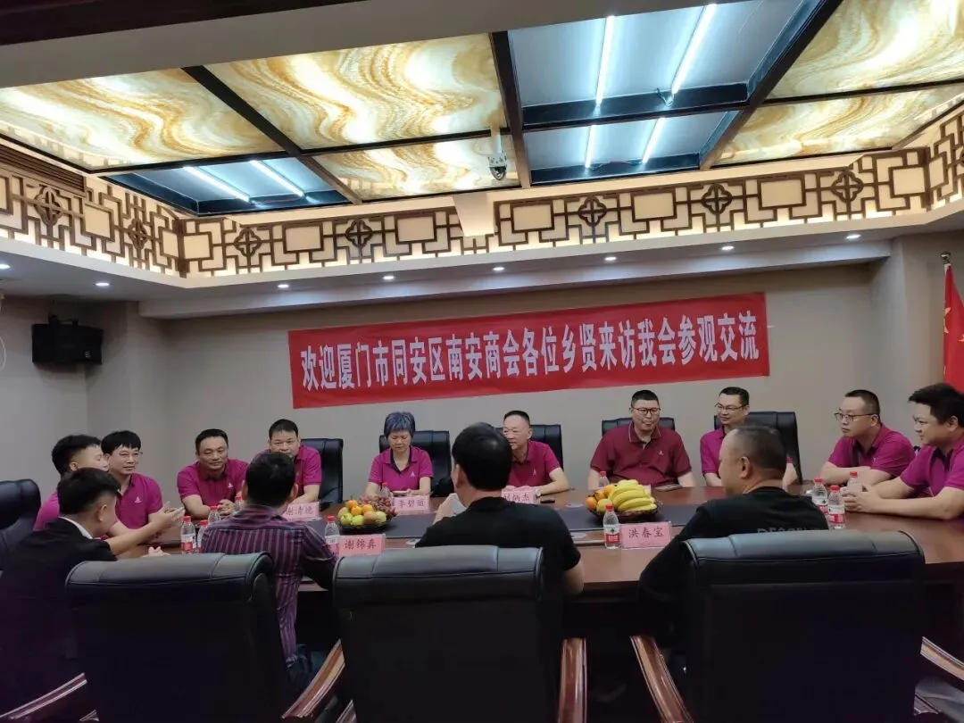 2025年9月7日,新加坡南安会馆执行顾问陈奕福、会长梁佳吉率乡贤代表团莅临我会参观交流。南安市委统战部副部长、市工商联党组书记黄保林、市侨联黄江峰出席,我会会长刘炳杰等10多名代表接待。此次交流为两地商会深化合作书写新篇,双方将在“敢拼会赢”精神引领下,构建常态化沟通机制,推动信息共享与资源对接。
