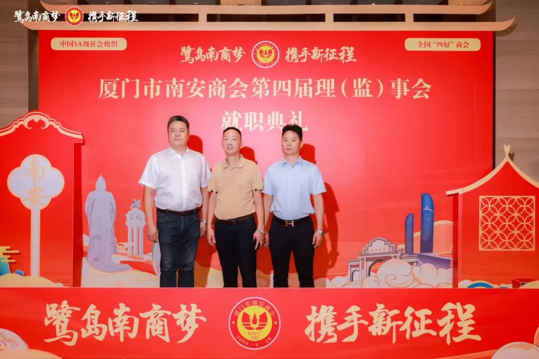 2025年9月22日我会会长刘炳杰,秘书长谢清德、常务副会长陈枝树受邀出席厦门市南安商会第四届理(监)事会就职典礼。