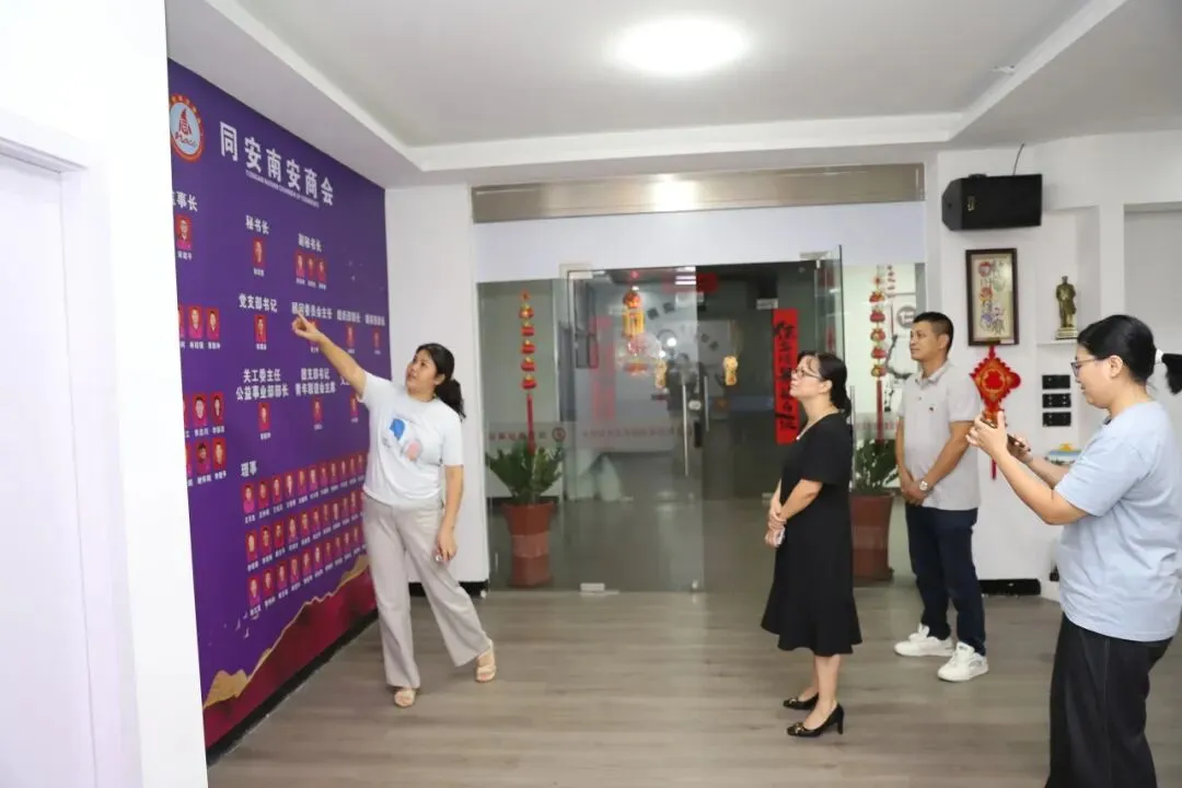 2025年9月23日,同安区社会工作部副部长王景兰一行莅临我会调研,重点考察商会运作状况,并就党建引领、行业协会商会改革转型等议题交流指导。