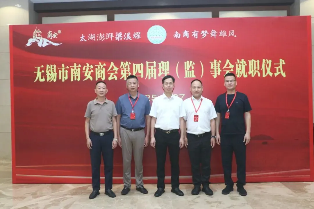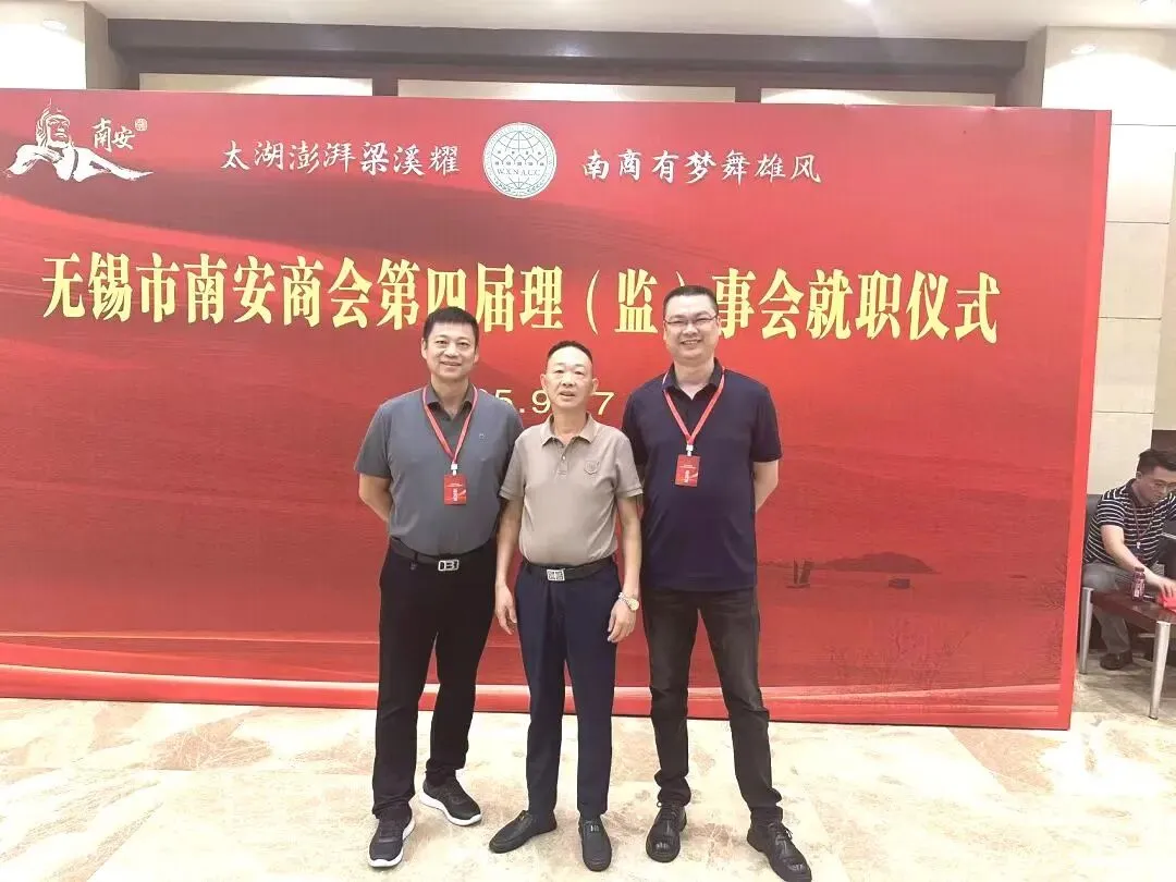 2025年9月27日我会会长刘炳杰、常务副会长林裕强、副监事长林云辉受邀出席无锡市南安商会第四届理(监)事会就职典礼。
