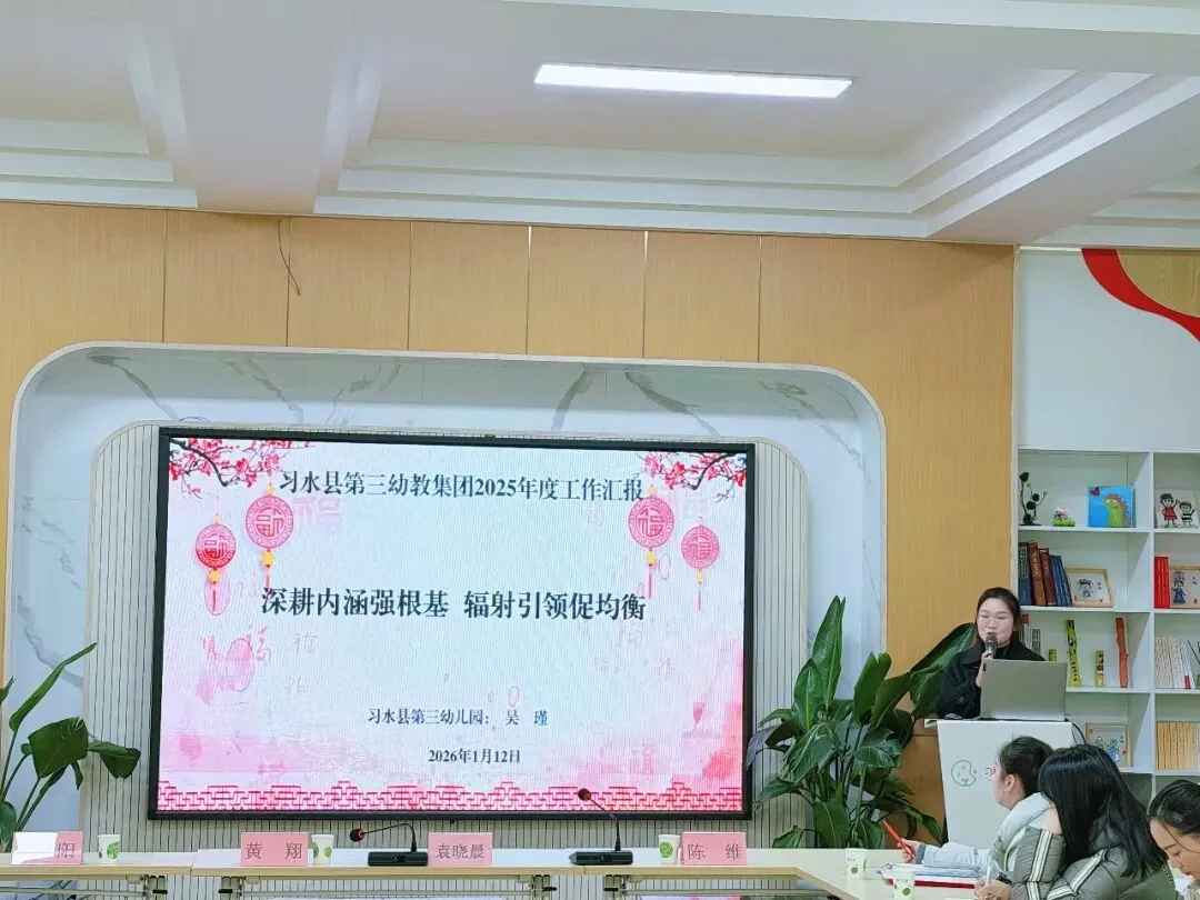 习水县第三幼儿园保教主任吴瑾对2025年集团工作成效作汇报交流。聚焦集团化办园模式下的管理协同、教研联动、资源共享等方面的实践探索,展现了集团化发展在促进区域均衡、整体提升中的积极作用。