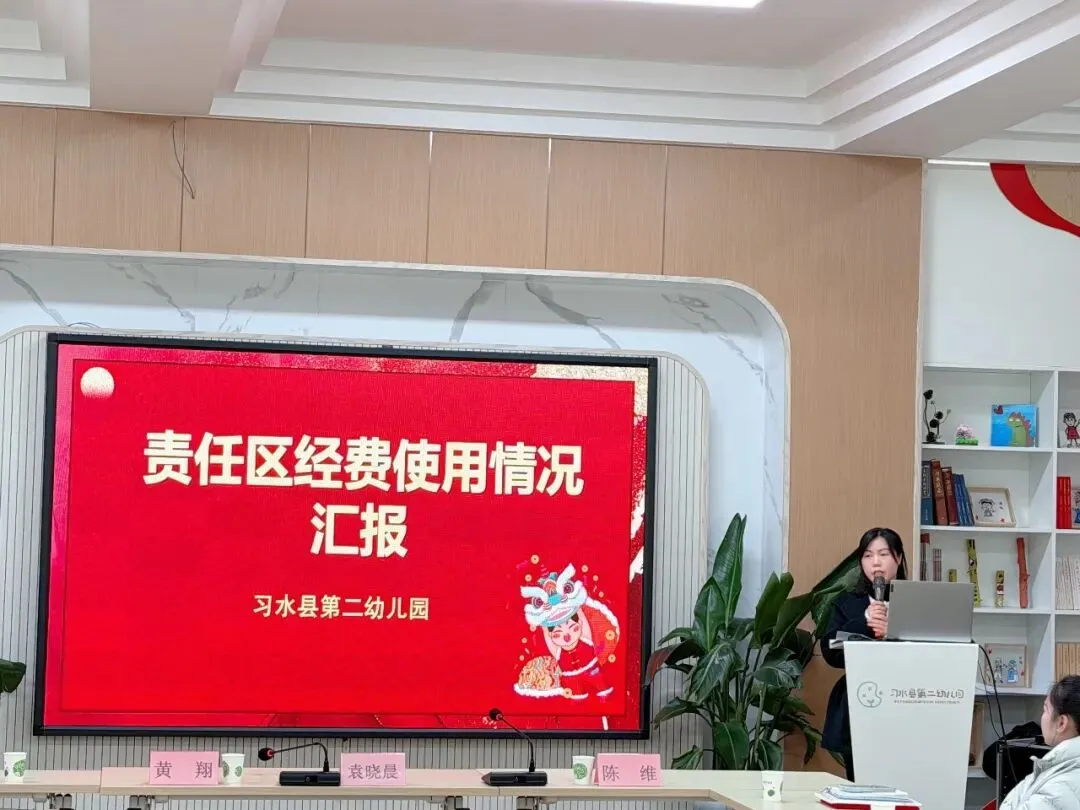 习水县桃林镇中心幼儿园园长王小娇汇报园所在责任区、集团的支持下,找准定位、激发内驱、寻求突破的奋斗历程与成长收获,展现了薄弱园所积极进取、奋发有为的良好精神风貌。责任区核心园保教主任张倩在年度工作汇报中,系统总结了2025年的主要成效:通过整合优质资源构建共享平台,深化教研引领与教师发展,建立精准帮扶机制,并拓展对外交流合作网络。报告以详实数据和案例,全面展现了责任区在推动县域学前教育质量提升和均衡发展方面取得的实质性成果。 责任区核心园副园长江小静就年度经费使用情况作专项汇报。汇报过程清晰、数据准确,充分体现了责任区工作的规范管理与经费使用的公开透明、高效合理,为各项工作的顺利开展提供了坚实保障。