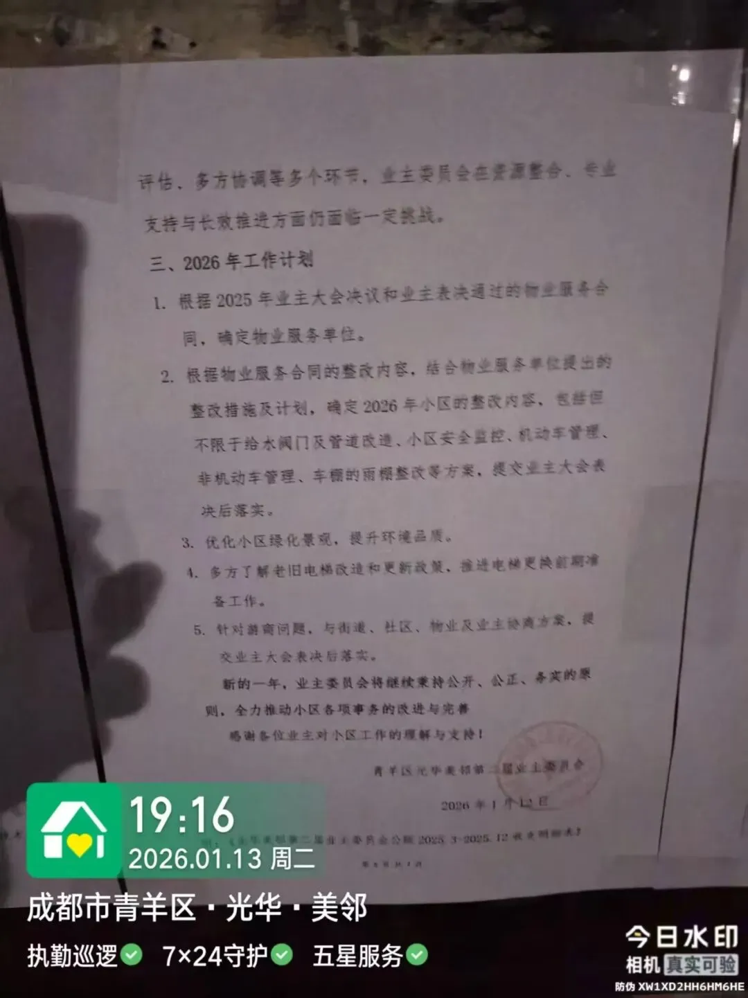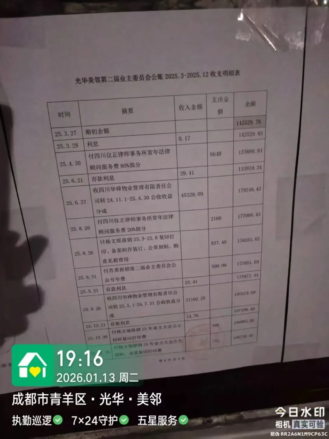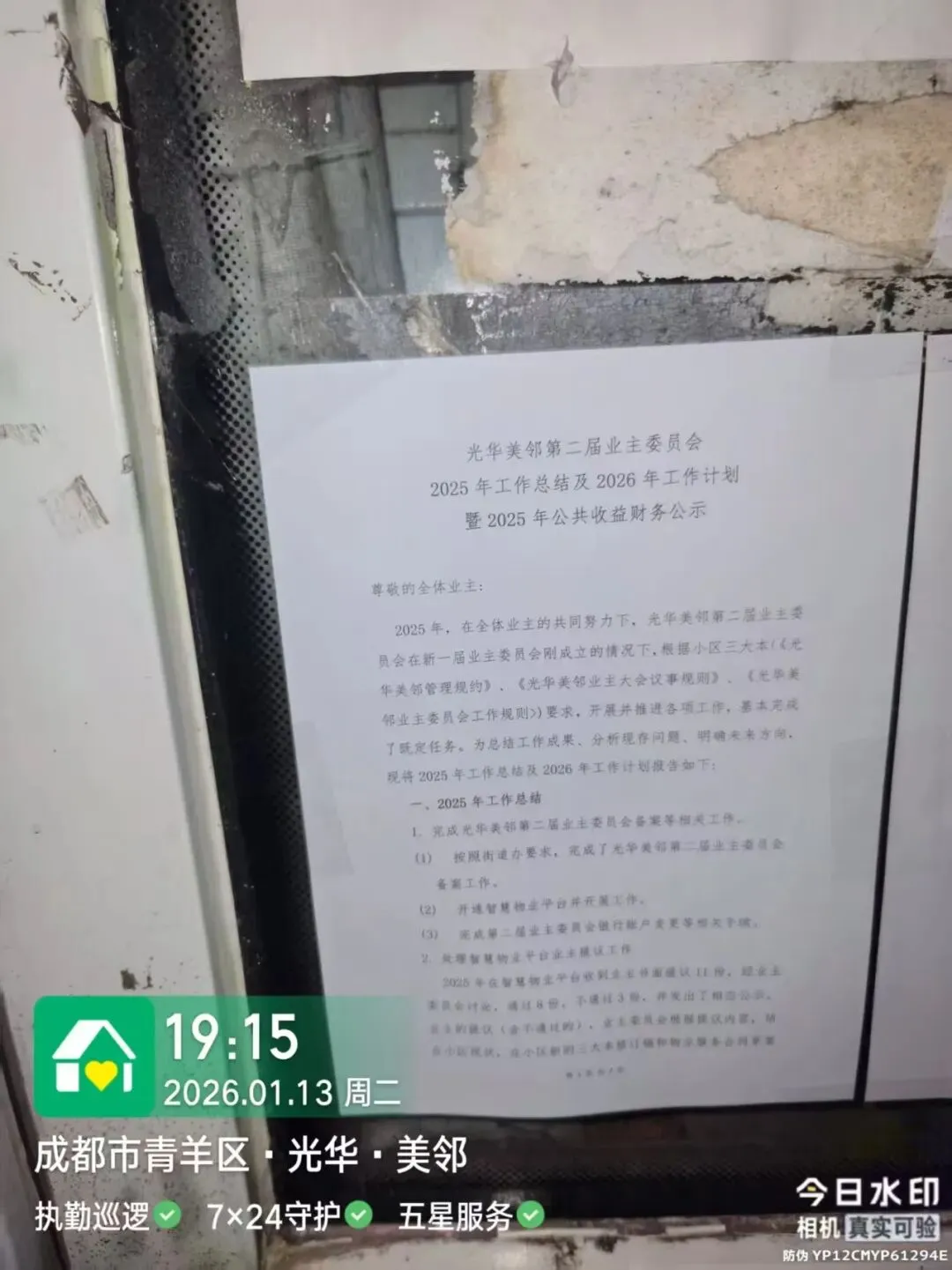 >光华美邻第二届业委会2025年工作总结及2026年工作计划暨2025年公收财务公示