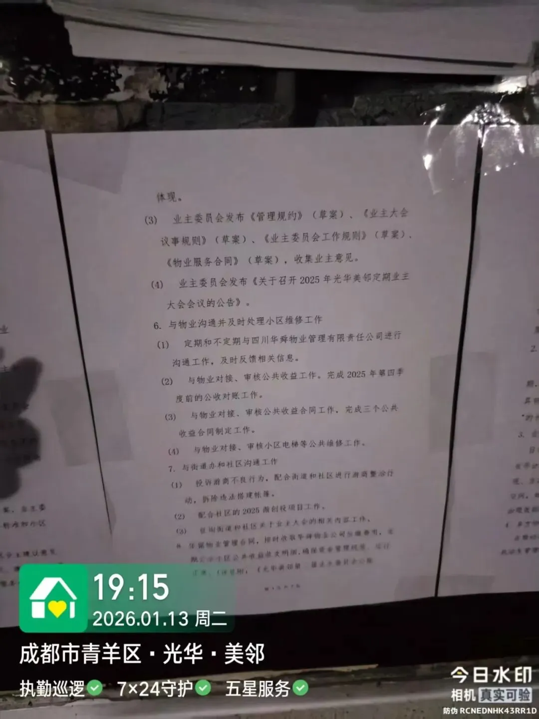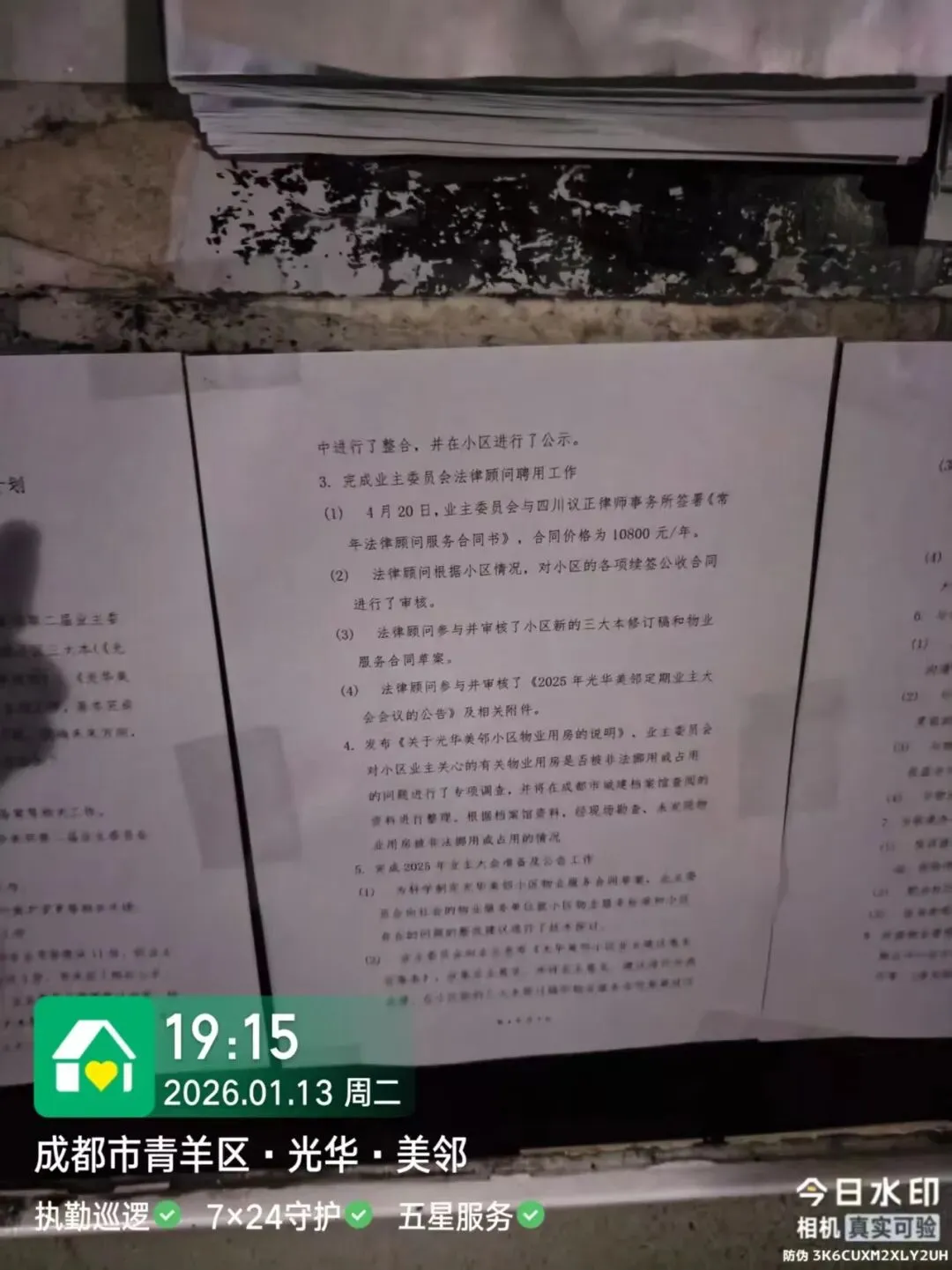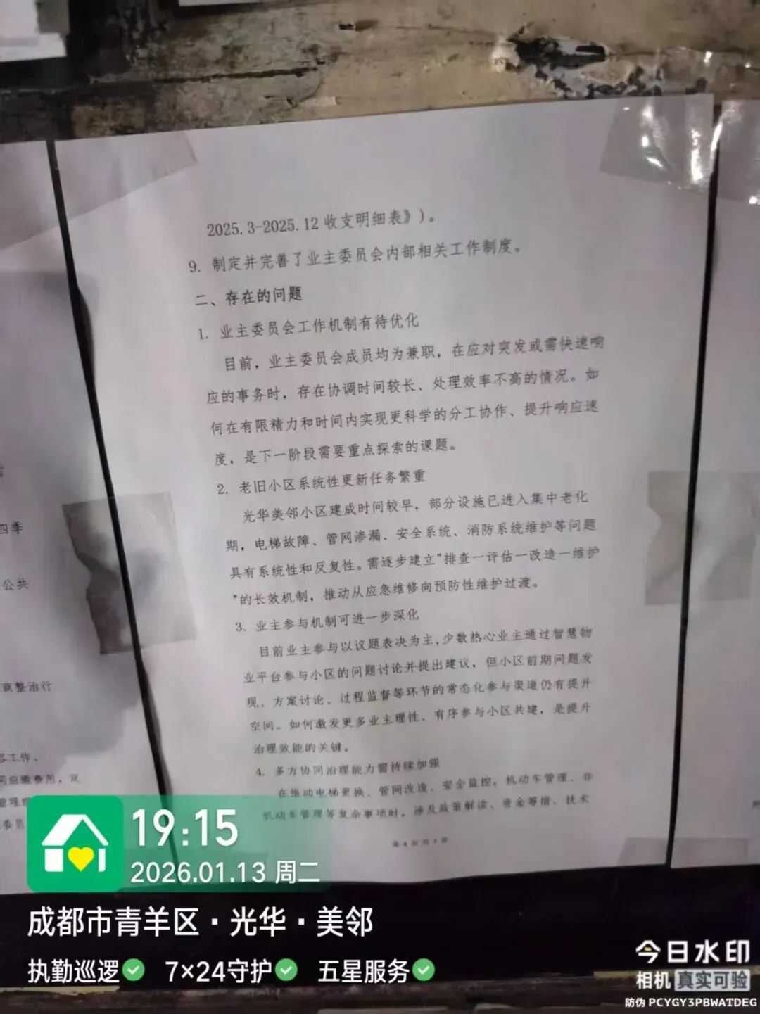>光华美邻第二届业委会2025年工作总结及2026年工作计划暨2025年公收财务公示