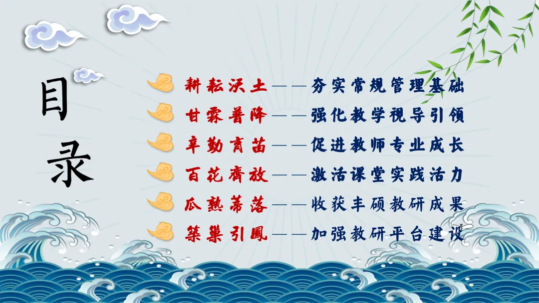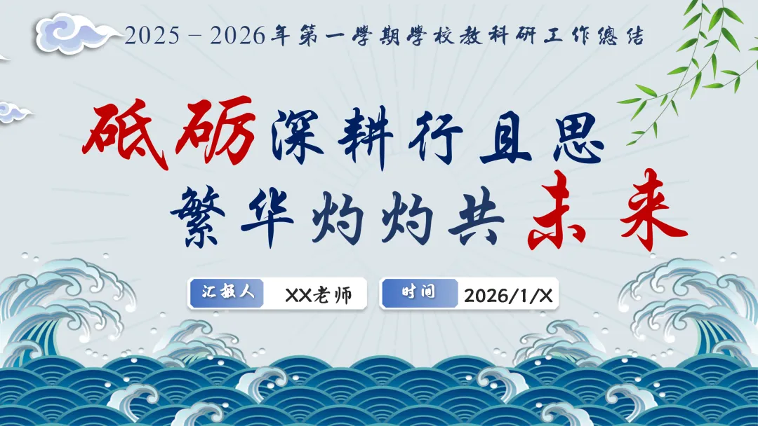 很高兴在这与您相遇,如果您是一位班主任老师,每天除了应对繁重的教学工作,还要加班整理班级、教务、教研、课件PPT资料,请关注下方的“春雨教务资料”,让我们风雨同路、一起成长~今天分享的是2025-2026年第一学期学校教科研工作总结的ppt课件及配套的发言稿,主题是《砥砺深耕行且思,繁华灼灼共未》。2025-2026年第一学期