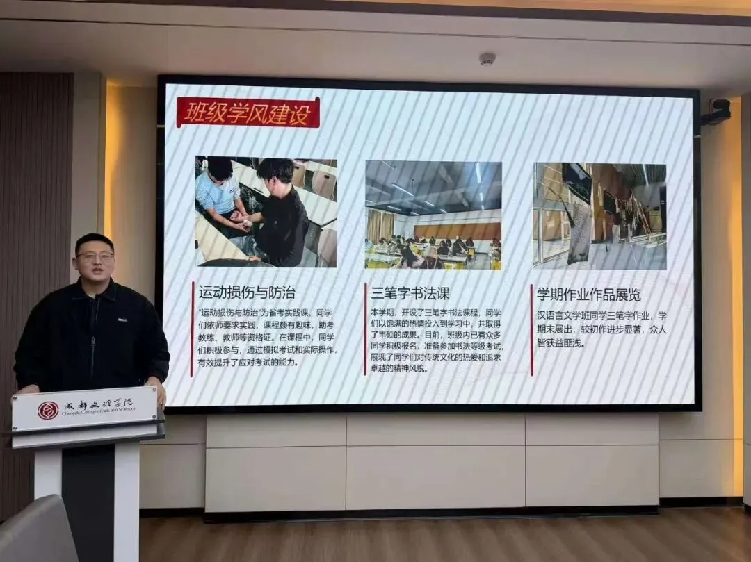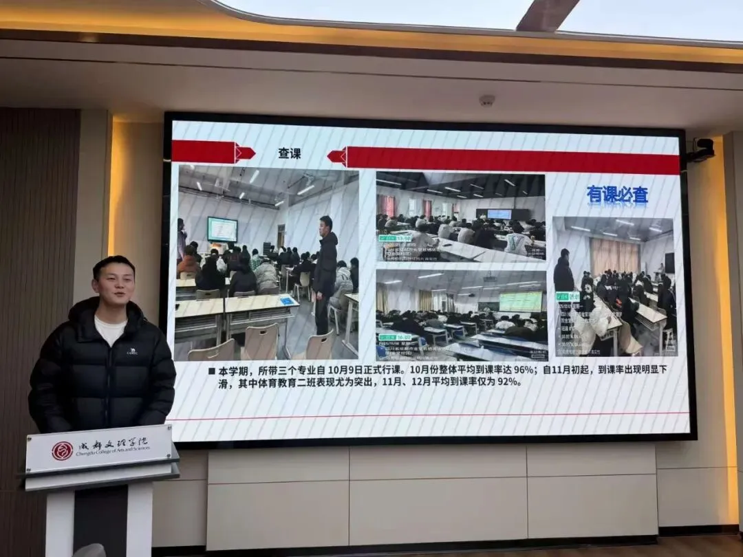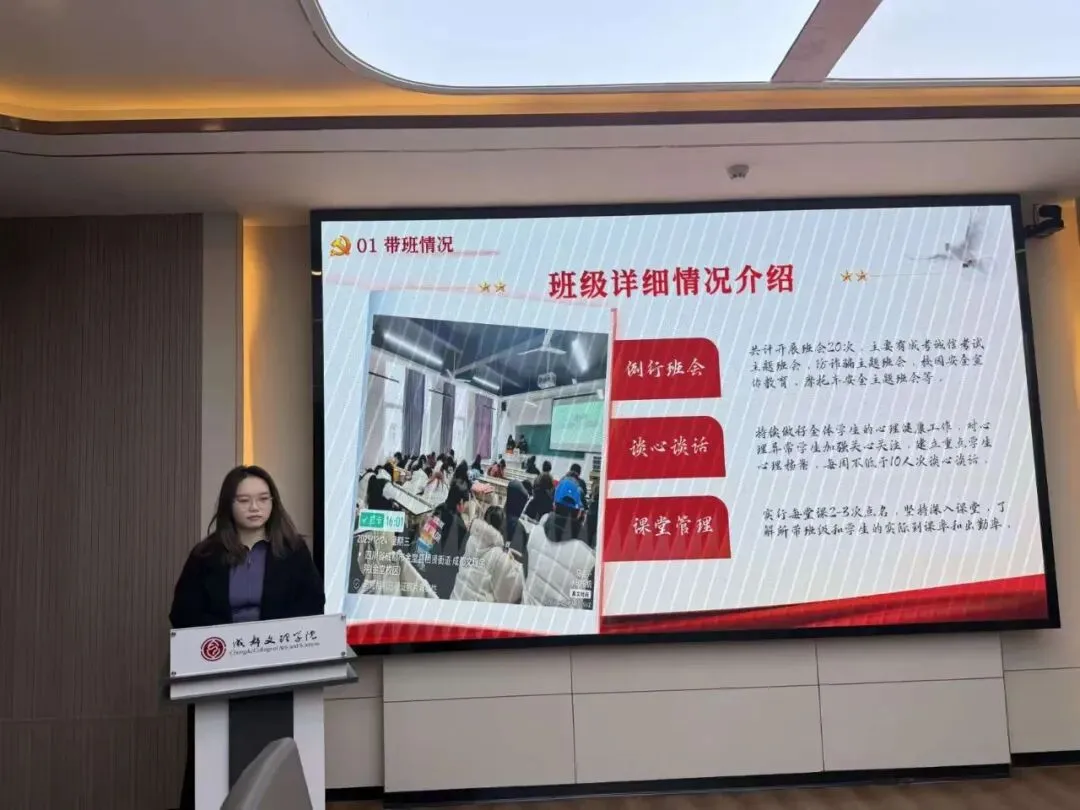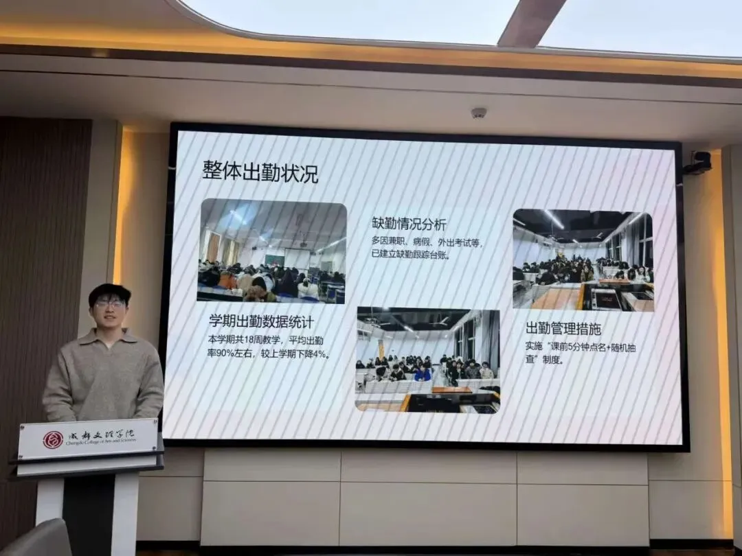 会上,全体辅导员依次进行述职汇报,结合详实数据与典型案例,系统复盘思想引领、学风建设、日常管理等核心工作的成效,同时深刻剖析工作中存在的短板与不足。汇报内容翔实务实,既全面呈现了本学期的工作实绩,也展现出勤于反思、锐意进取的良好风貌。
