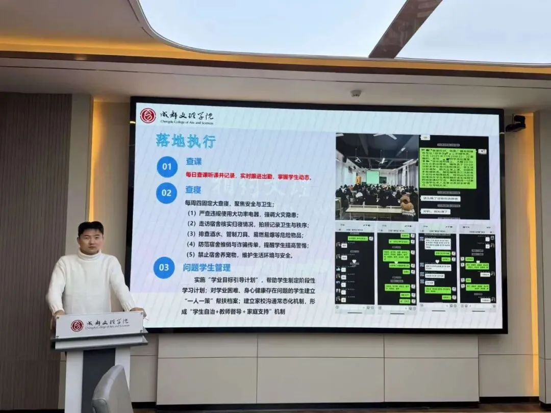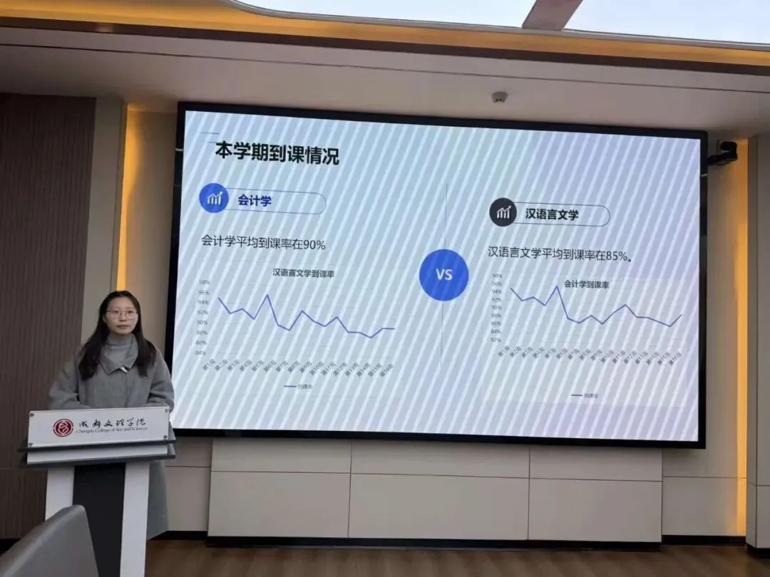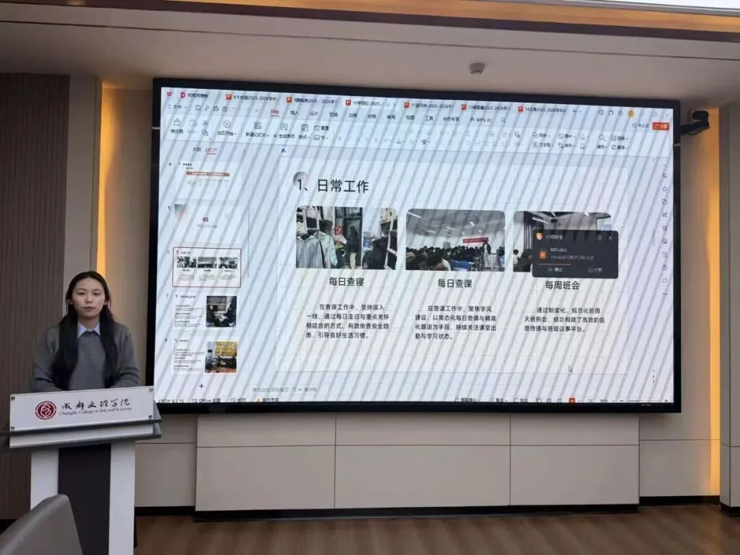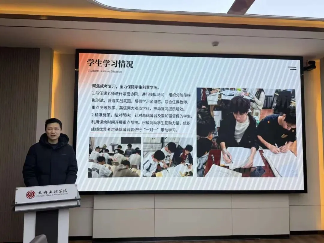 会上,全体辅导员依次进行述职汇报,结合详实数据与典型案例,系统复盘思想引领、学风建设、日常管理等核心工作的成效,同时深刻剖析工作中存在的短板与不足。汇报内容翔实务实,既全面呈现了本学期的工作实绩,也展现出勤于反思、锐意进取的良好风貌。