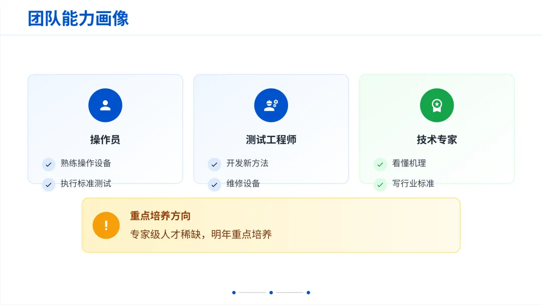 不懂数据的检测员不是好工程师。开展 Minitab 数据分析与测量系统分析 (MSA) 专项培训。让工程师学会看 CPK、学会做回归分析。目标:培养 3 名具备高级数据分析能力的“专家型”人才。